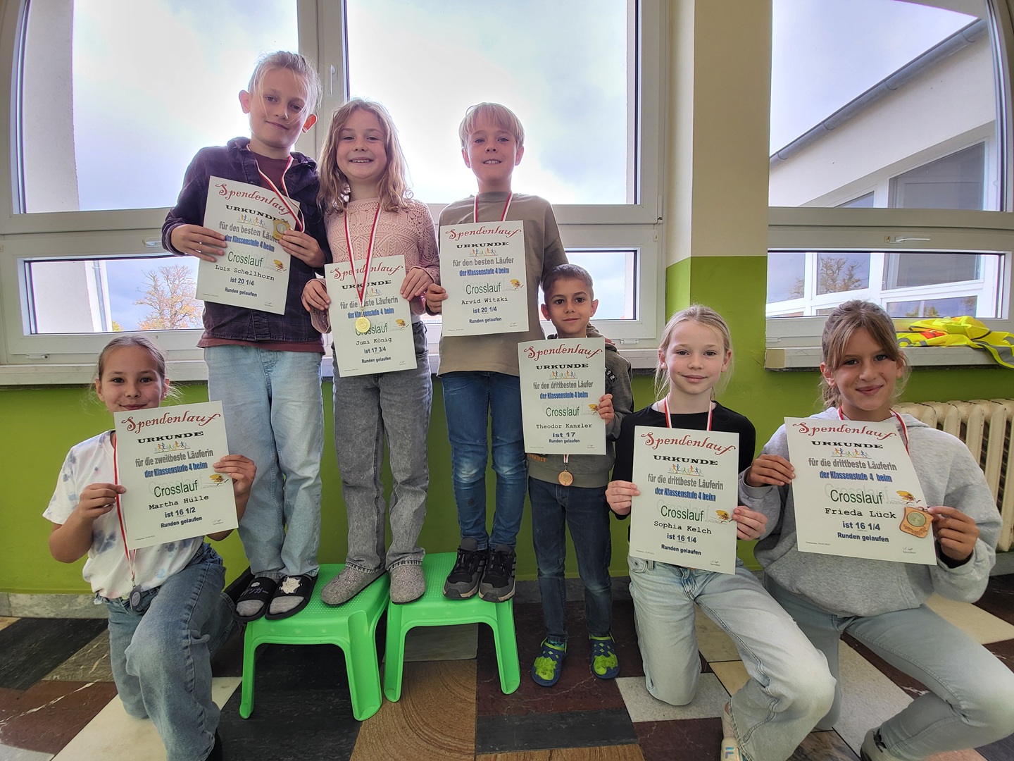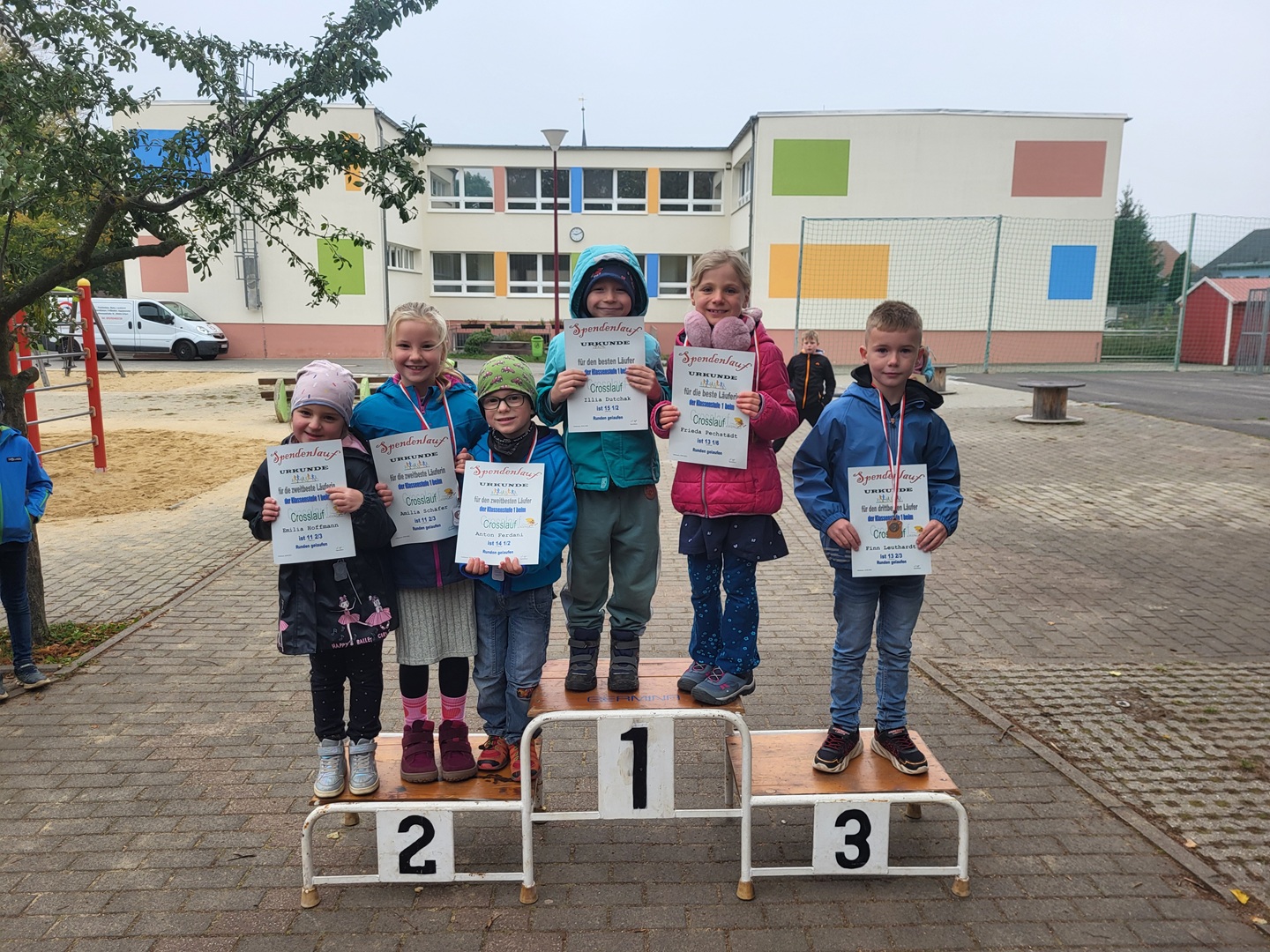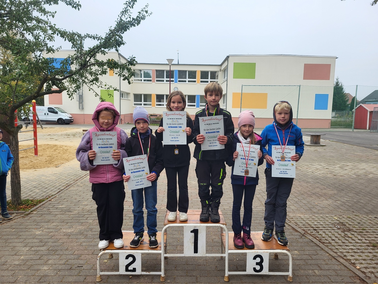 Die Crosslauf-Siegerehrung fand am Mittwoch, den 01.10.2025, statt und wurde bereits sehnsüchtig erwartet. Die drei Erstplatzierten jeder Klassenstufe erhielten Medaillen und Urkunden. Zudem erhielt jeder Teilnehmer eine Urkunde, denn alle haben durch ihre sportliche Leistung gewonnen.