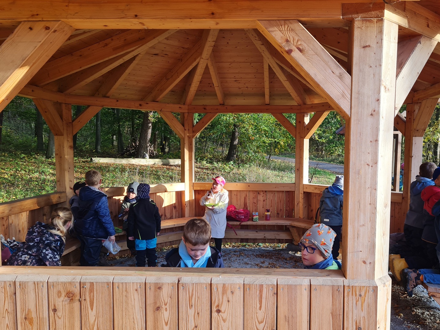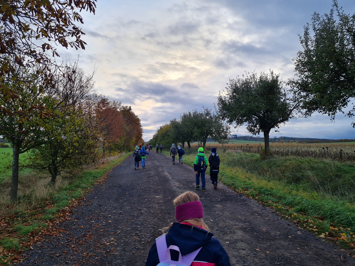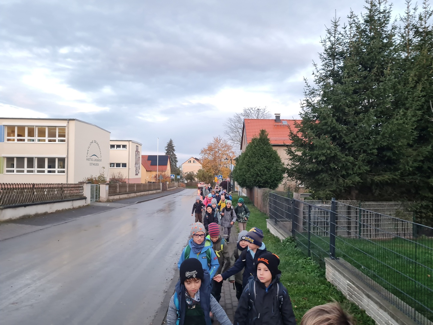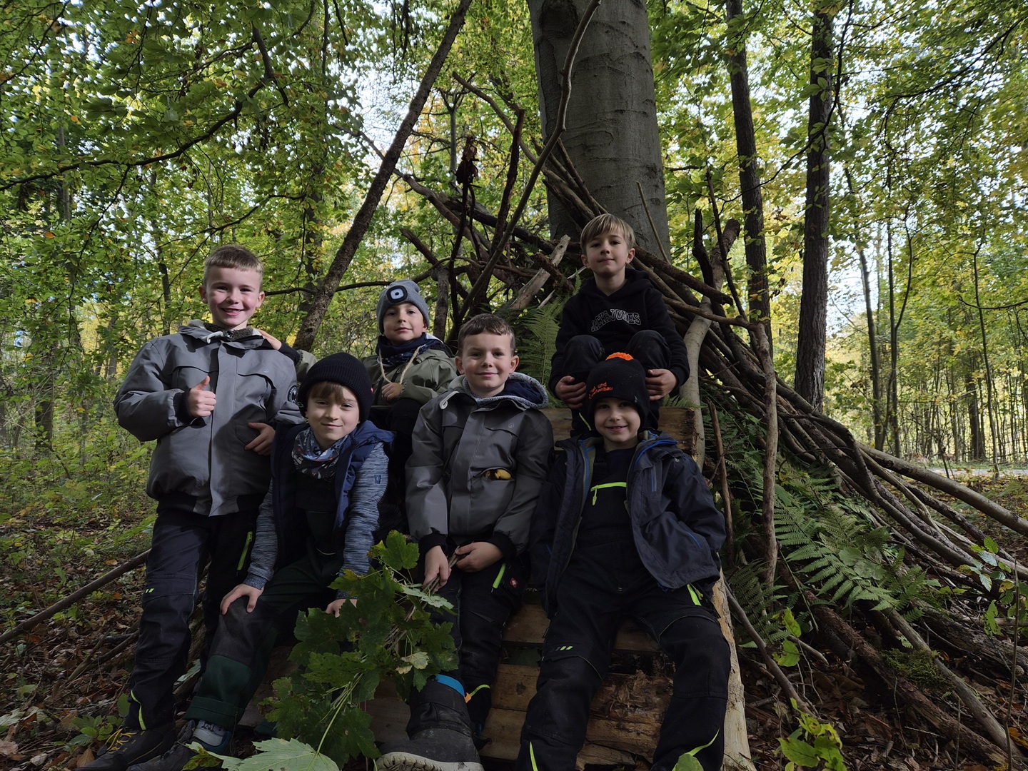 Am Dienstag, den 21.10.2025, und am Mittwoch, den 22.10.2025, machten sich alle Klassen 1 bis 4 der Grundschule auf ihren Wandertag in den Osthäuser Wald. Bei herrlich herbstlichem Wetter – an beiden Tagen zeigte sich sogar die Sonne – liefen wir gemeinsam zum Waldhäuschen. Der Weg dorthin wurde durch kleine Entdeckungen und das Sammeln von Kastanien, Eicheln und anderen Waldfunden kurzweilig und spannend gestaltet.