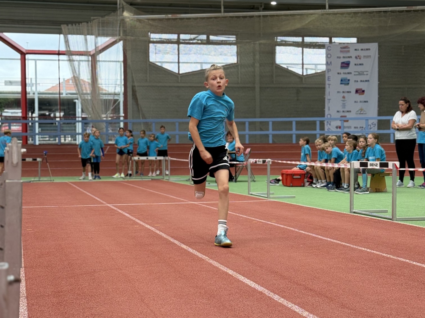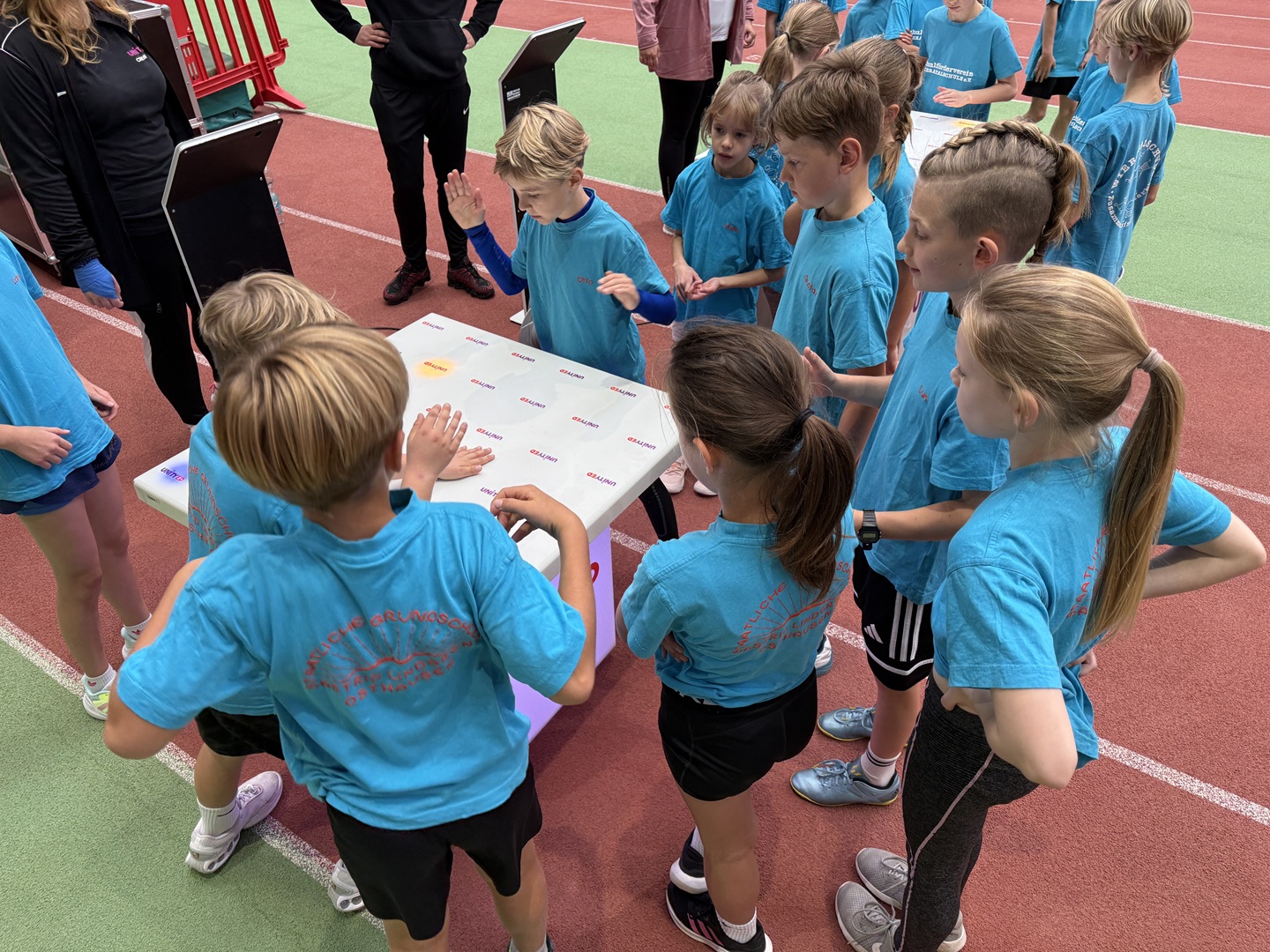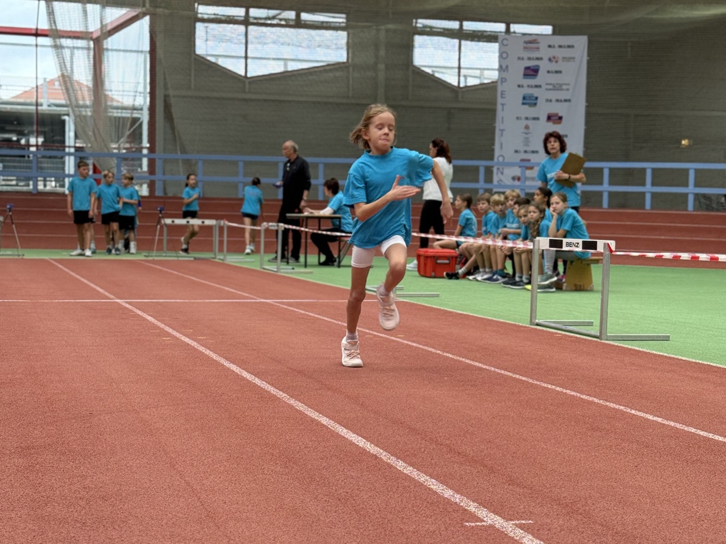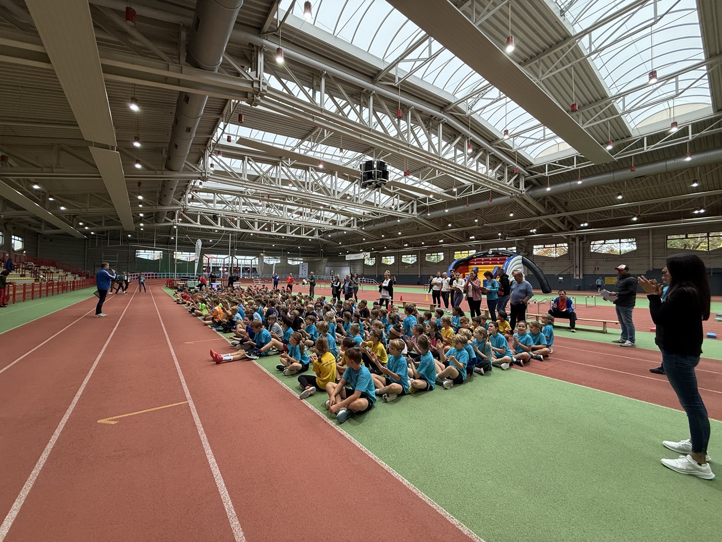 Am Donnerstag, 23.10.2025 erlebte der „SprintCup“ – die schnellste Schule Thüringens“ unter den Organisatoren Julian Reus und Kai Röckert in der Hartwig-Gauder-Leichtathletikhalle in Erfurt bereits seine sechste Auflage. Unsere Schule durfte zum zweiten Mal daran teilnehmen. Zehn Grundschulen und zehn weiterführende Schulen stellten sich den fünf Stationen mit dem finalen Staffellauf, um die schnellste Schule Thüringens zu ermitteln. Gewetteifert wurde nicht nur im klassischen Sprint, sondern an fünf sprintspezifischen Stationen, an denen neben konditionellen Fähigkeiten, wie Kraft & Schnelligkeit, auch koordinative Fähigkeiten, wie die Reaktions- und Rhythmisierungsfähigkeit, überprüft wurden. Die anderen Grundschulen kamen aus Eisenach, Schleusingen, Walschleben, Oberlind, Berlstedt, Greußen, Gera, Langenleuba-Niederhain und Aschara.