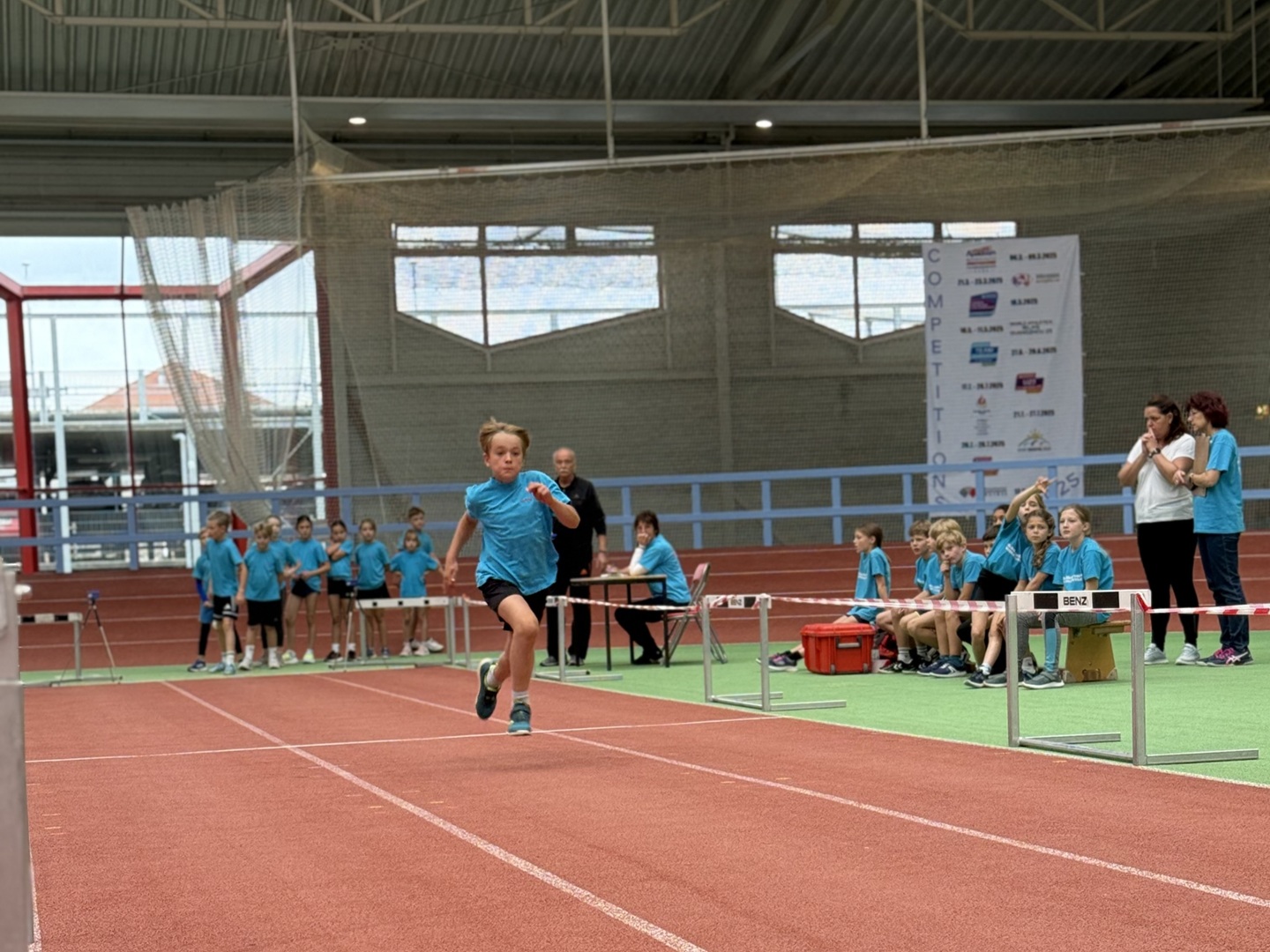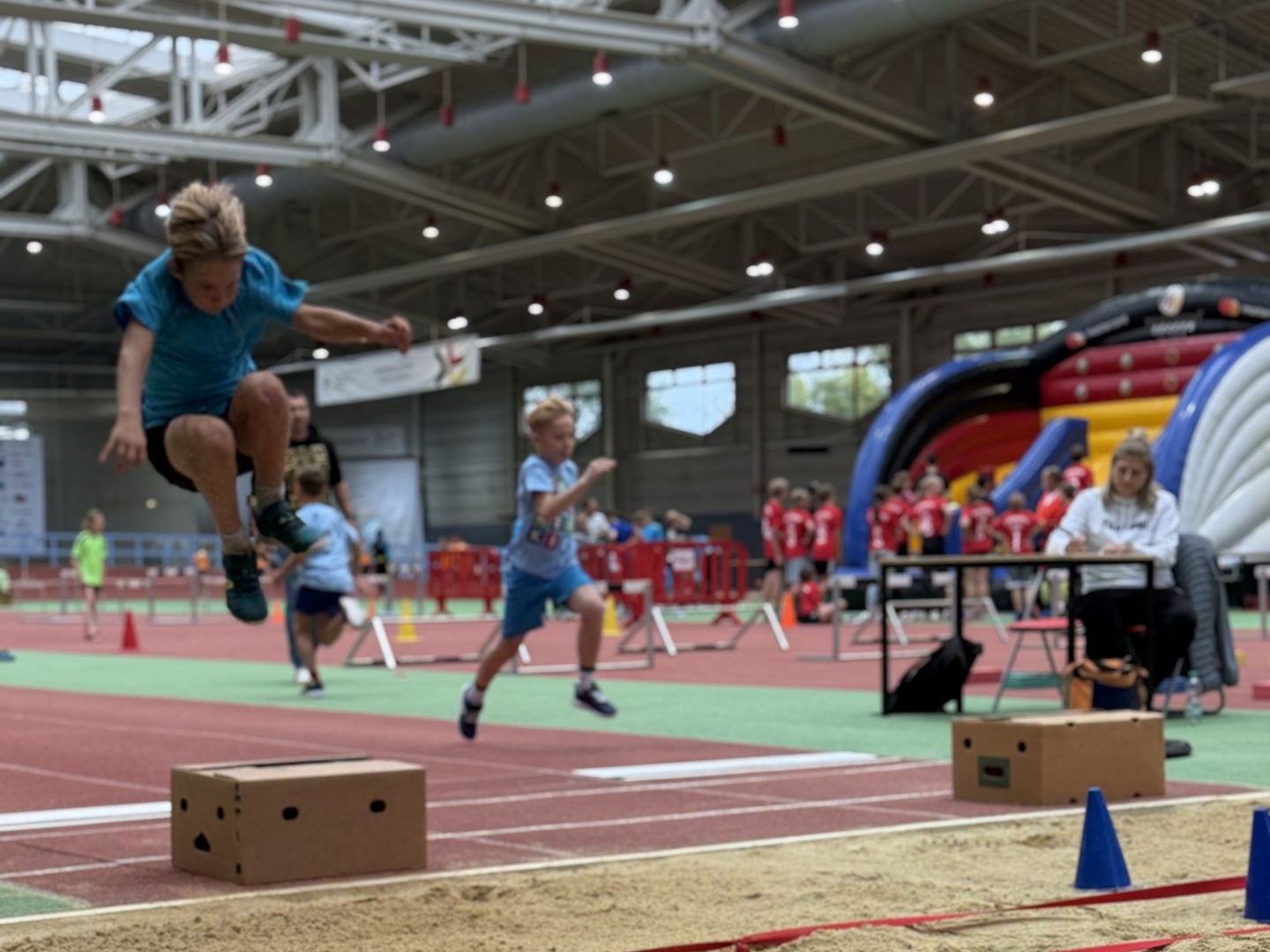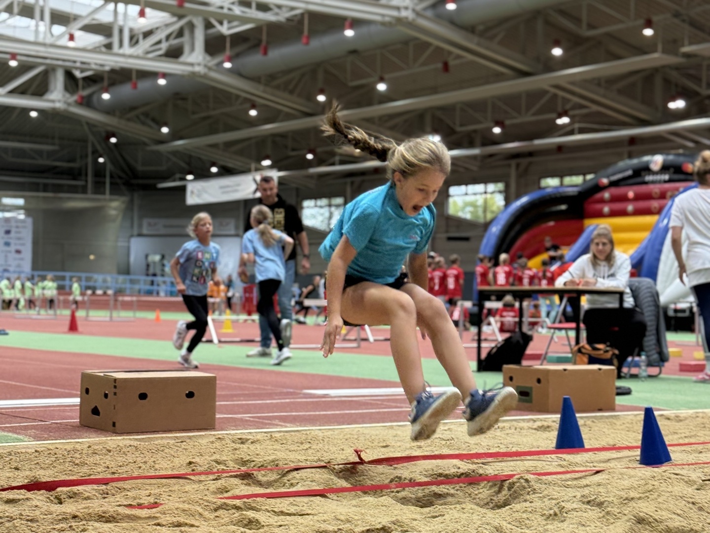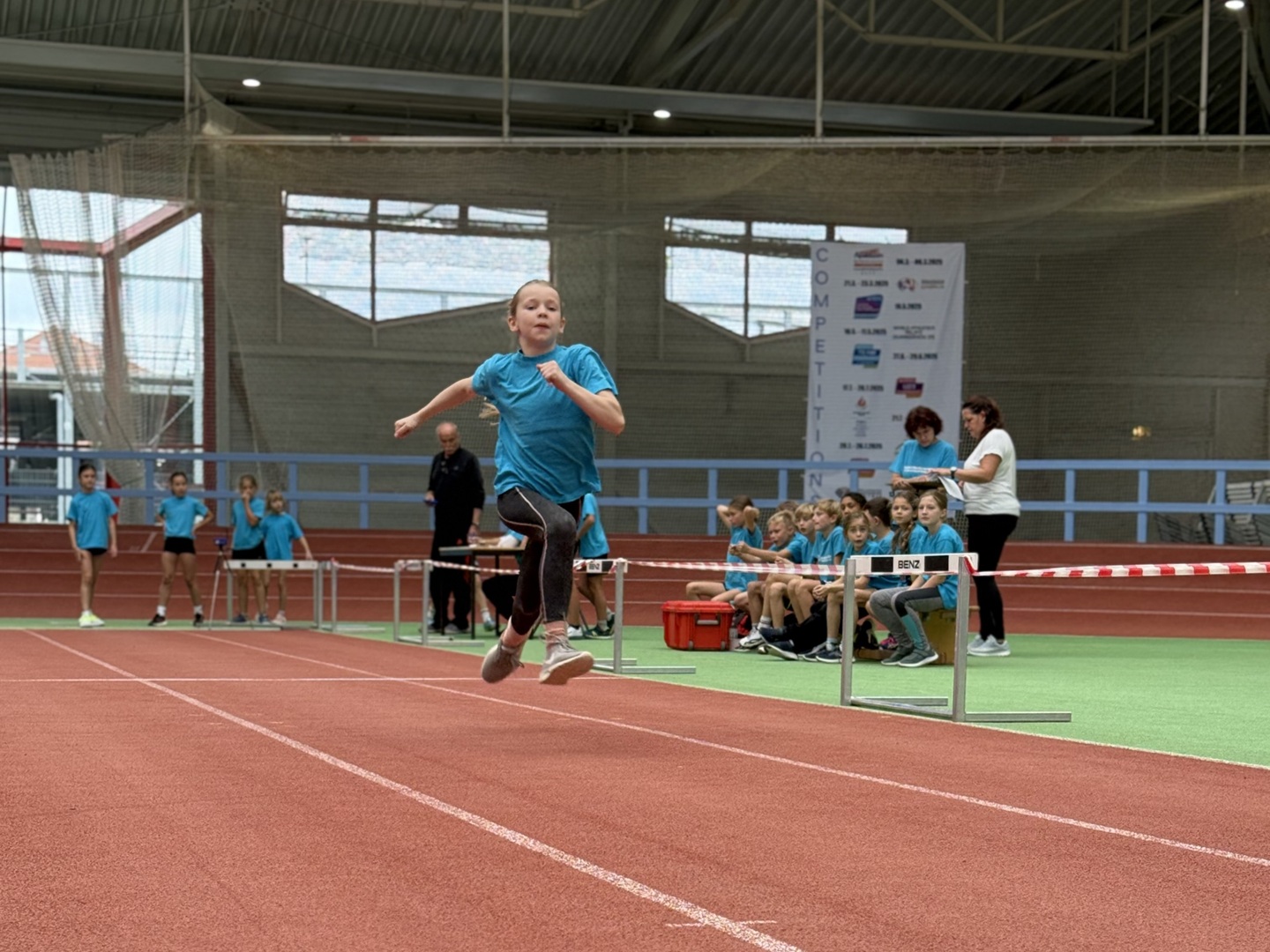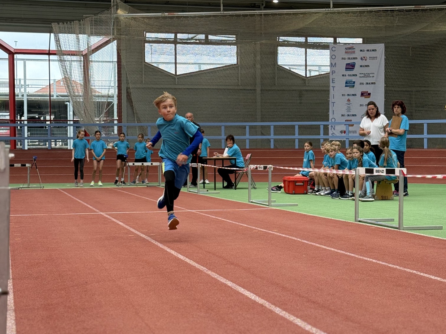 Am Donnerstag, 23.10.2025 erlebte der „SprintCup“ – die schnellste Schule Thüringens“ unter den Organisatoren Julian Reus und Kai Röckert in der Hartwig-Gauder-Leichtathletikhalle in Erfurt bereits seine sechste Auflage. Unsere Schule durfte zum zweiten Mal daran teilnehmen. Zehn Grundschulen und zehn weiterführende Schulen stellten sich den fünf Stationen mit dem finalen Staffellauf, um die schnellste Schule Thüringens zu ermitteln. Gewetteifert wurde nicht nur im klassischen Sprint, sondern an fünf sprintspezifischen Stationen, an denen neben konditionellen Fähigkeiten, wie Kraft & Schnelligkeit, auch koordinative Fähigkeiten, wie die Reaktions- und Rhythmisierungsfähigkeit, überprüft wurden. Die anderen Grundschulen kamen aus Eisenach, Schleusingen, Walschleben, Oberlind, Berlstedt, Greußen, Gera, Langenleuba-Niederhain und Aschara.