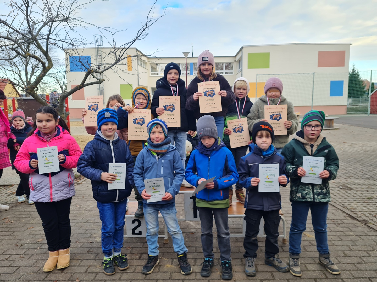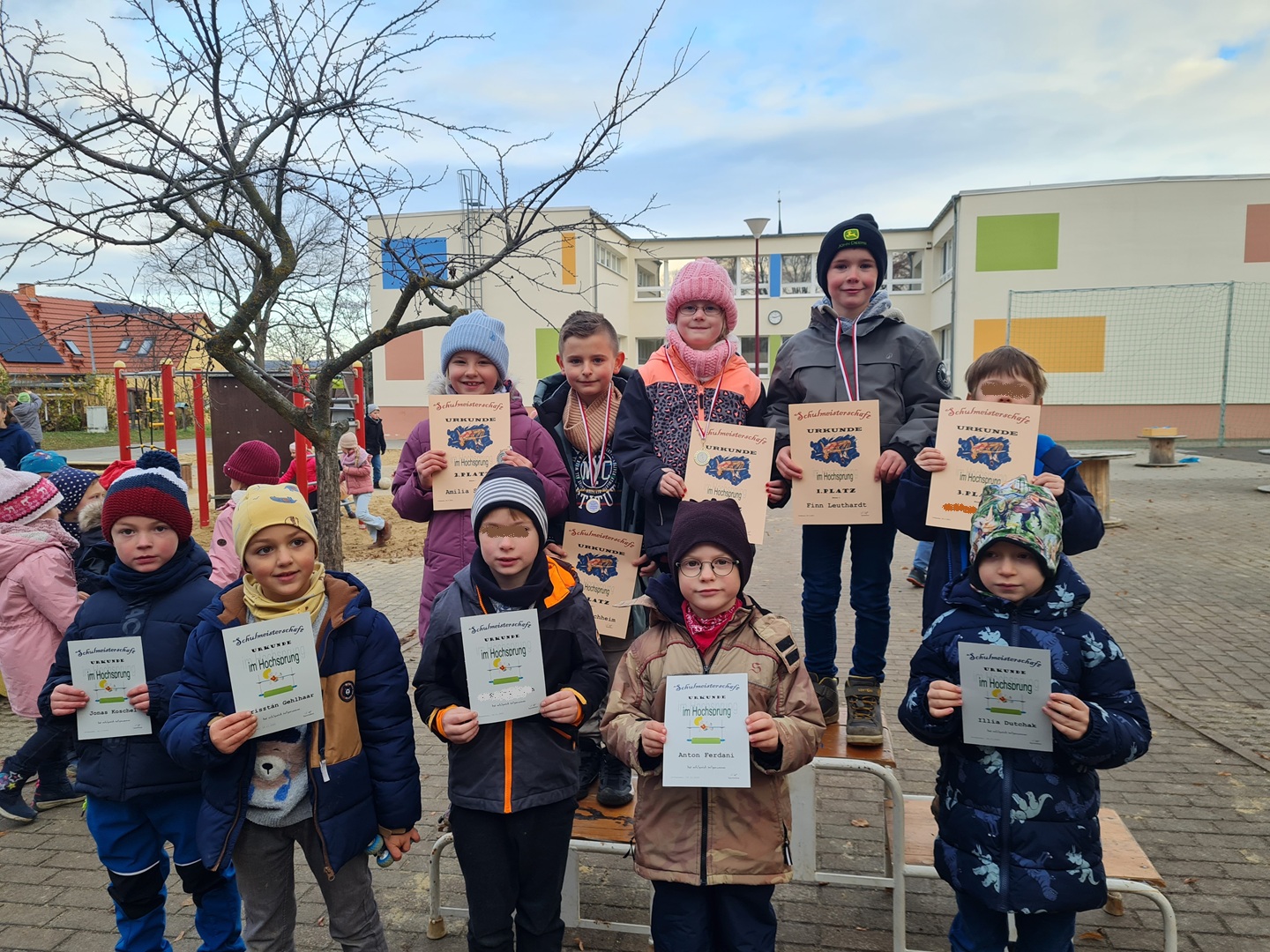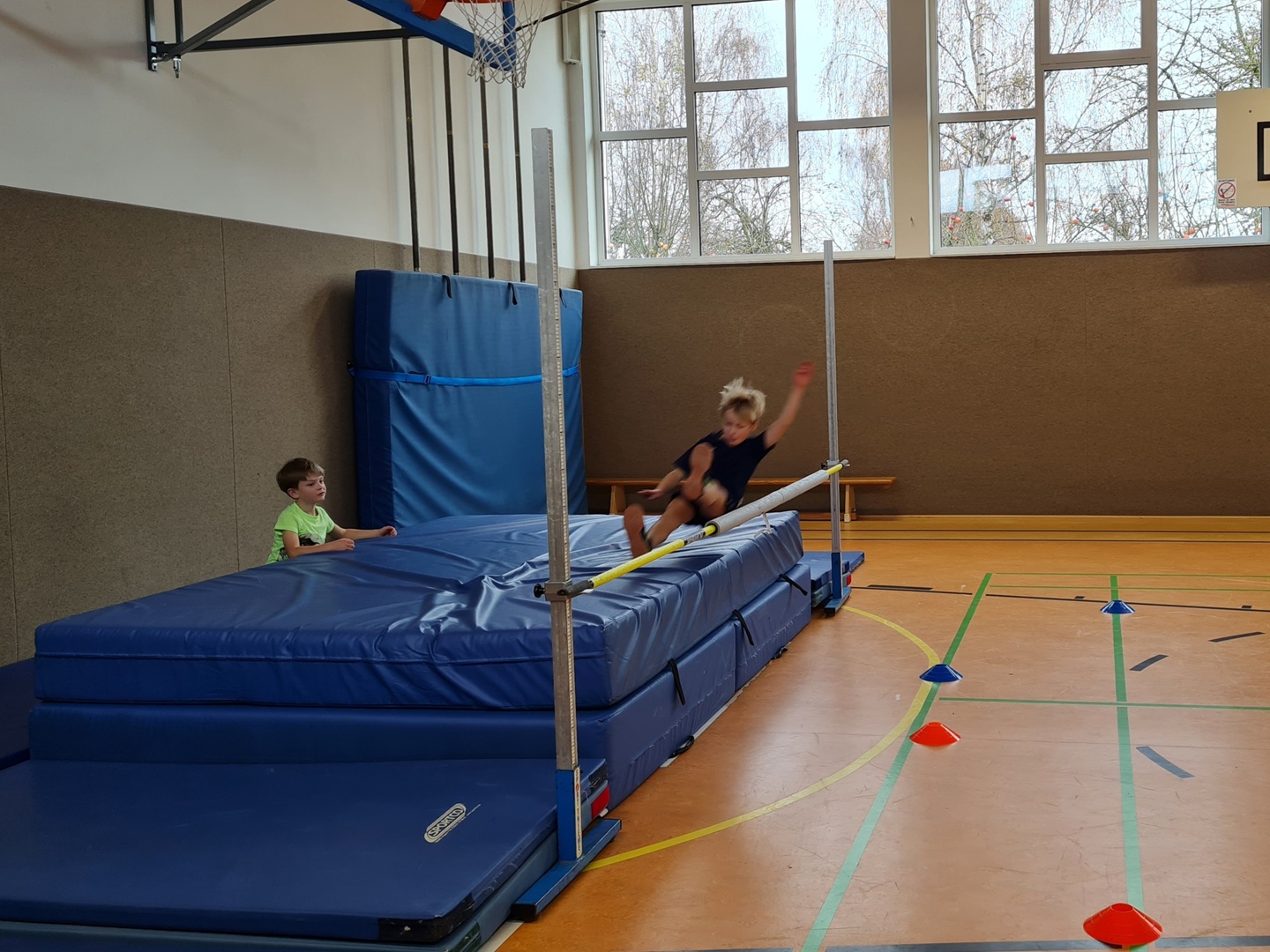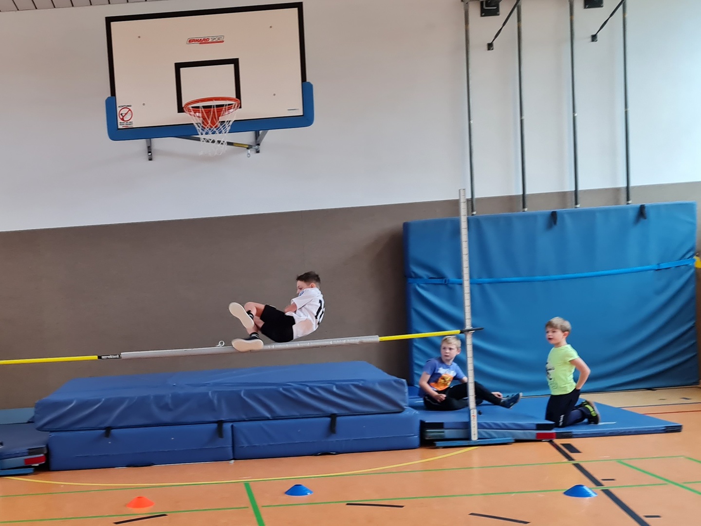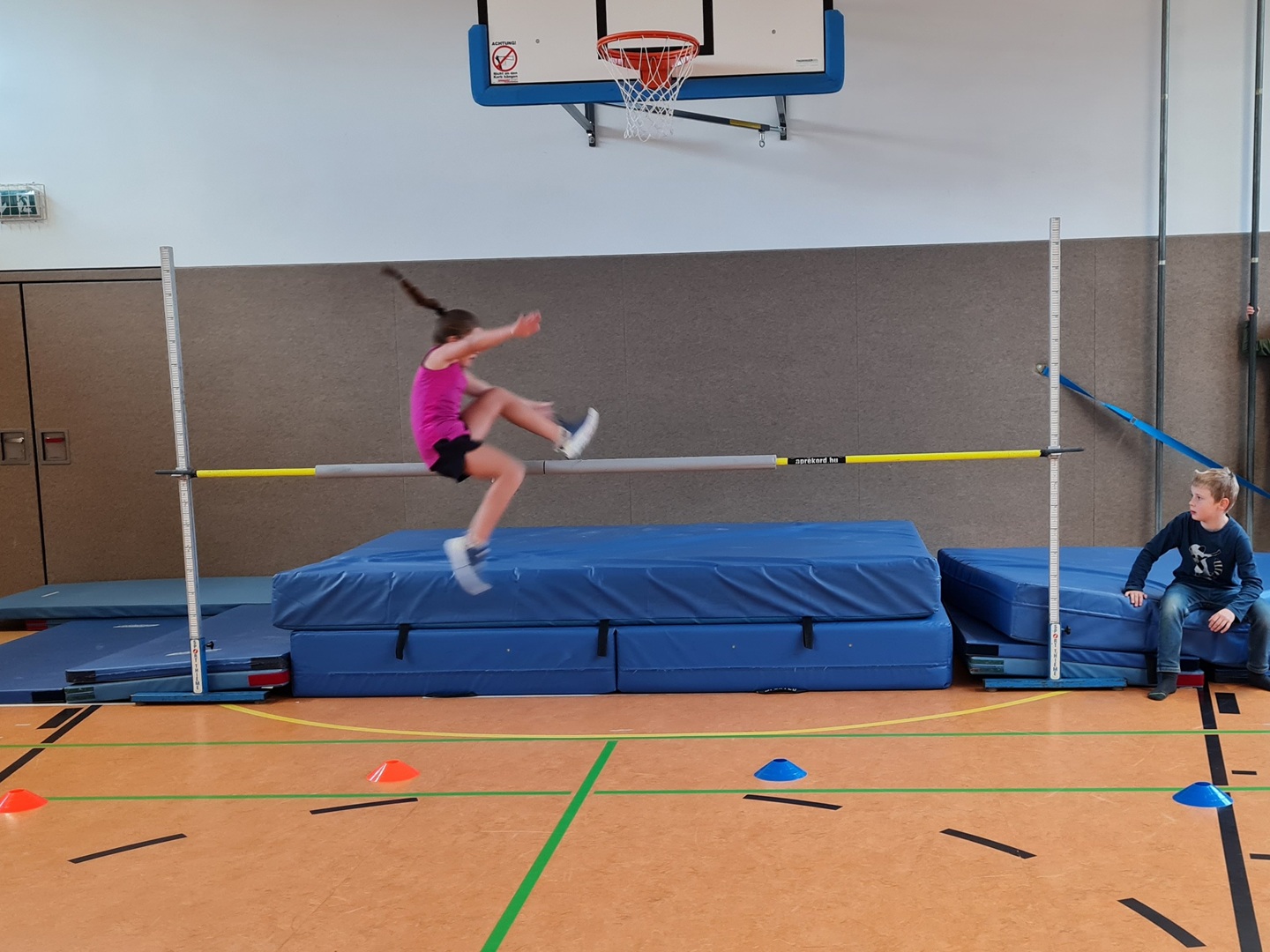 Am Dienstag, 18.11.2025 fand die Schulmeisterschaft im Hochsprung statt. In den letzten Wochen wurde dafür im Unterricht geübt. Insgesamt nahmen 38 Schülerinnen und Schüler aus den Klassen 1 bis 4 teil. Die Teilnahme an diesem Wettbewerb war freiwillig. Der Wettkampf verlief spannend und war von einer positiven, motivierenden Atmosphäre geprägt. Die Schülerinnen und Schüler zeigten Fairness, gegenseitige Unterstützung und sportlichen Ehrgeiz. Mehrere Teilnehmende stellten persönliche Bestleistungen auf. Die Leistungskurve variiert je nach Klasse und individuellem Training, doch der Gesamteindruck war von fortschrittlicher Technik, guter Koordination und zunehmender Sprungkraft geprägt.