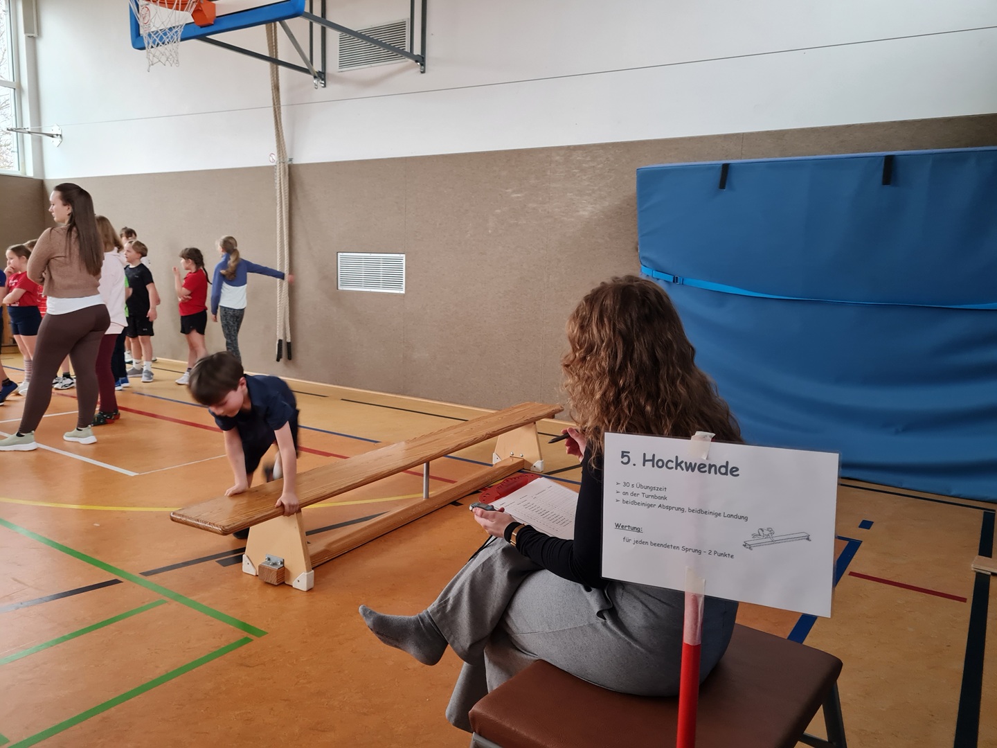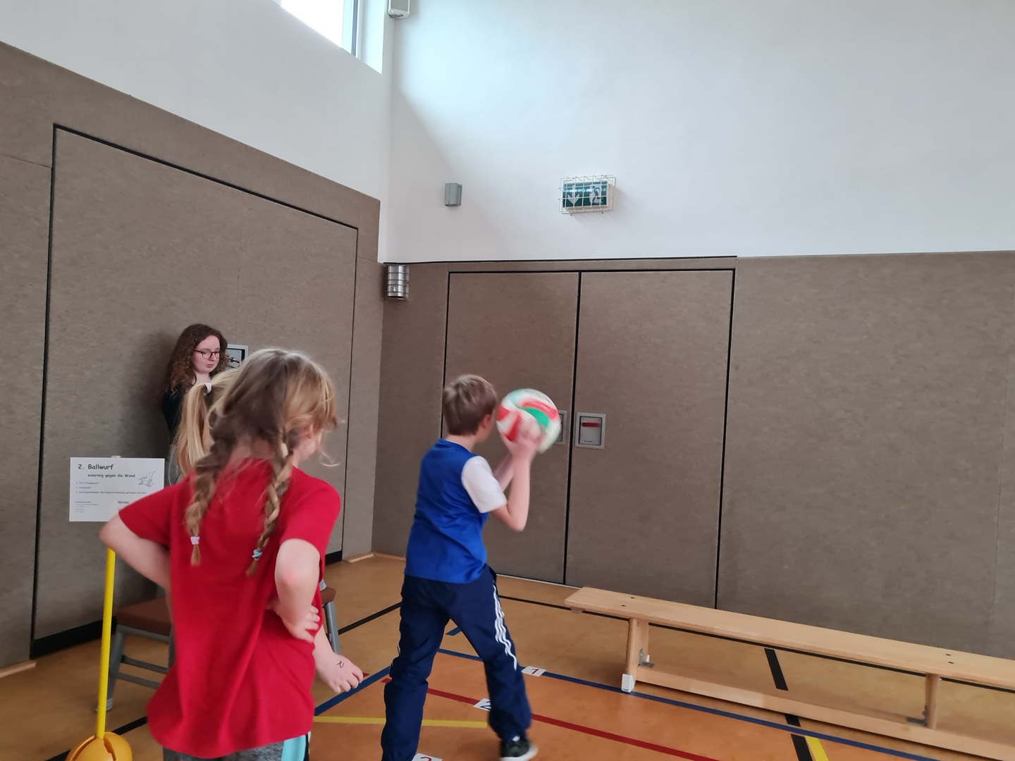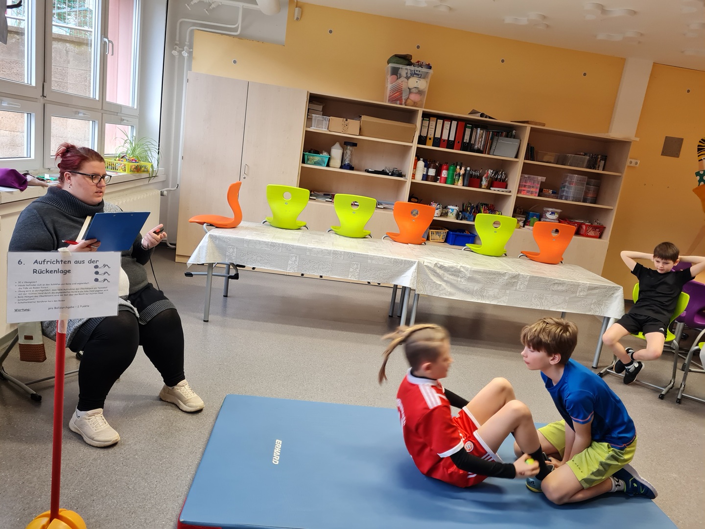 In klassengemischten Gruppen meisterten die Kinder gemeinsam mit einer Lehrerin oder Erzieherin jede Station. Dabei wurde lautstark angefeuert, unterstützt und mitgefiebert – eine tolle Stimmung in der ganzen Turnhalle und in den Horträumen. Zwischendurch gab es eine „Pause-Station“, um kurz zu entspannen oder zu spielen.