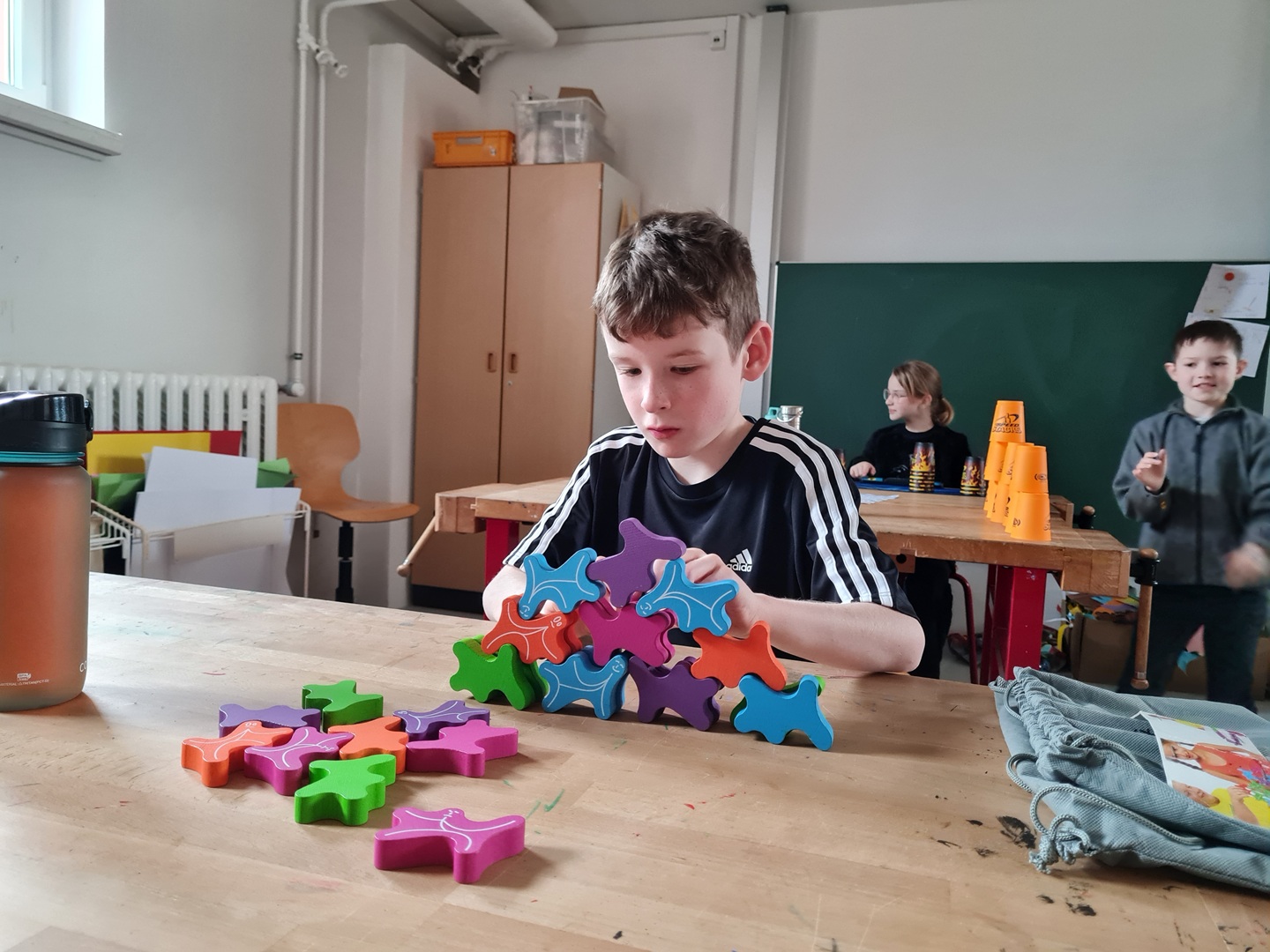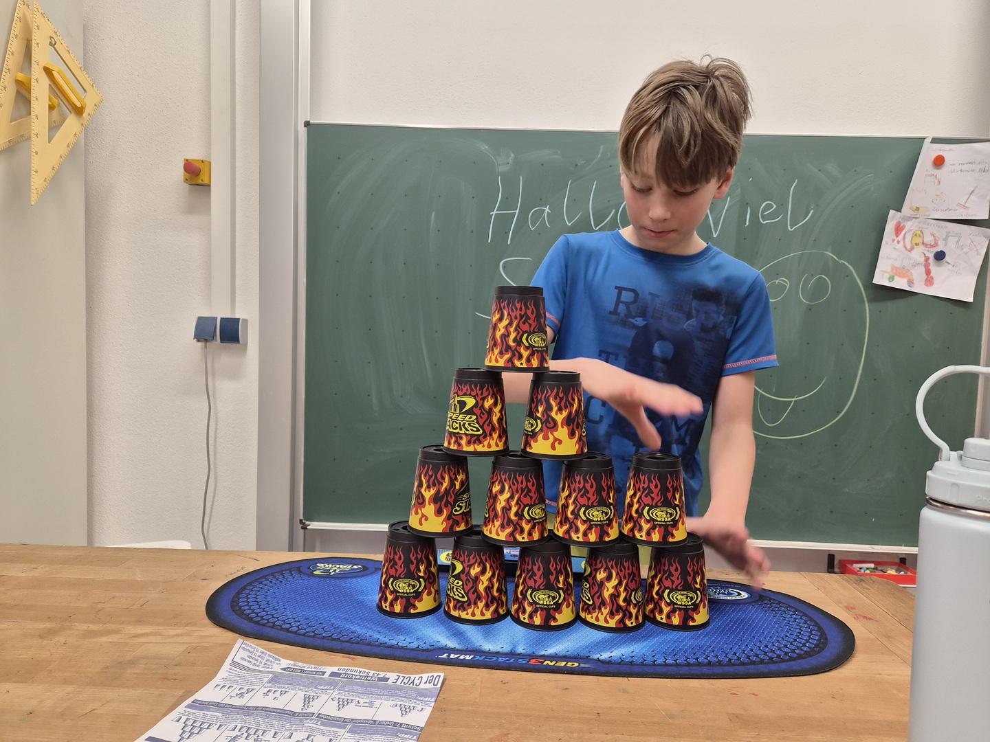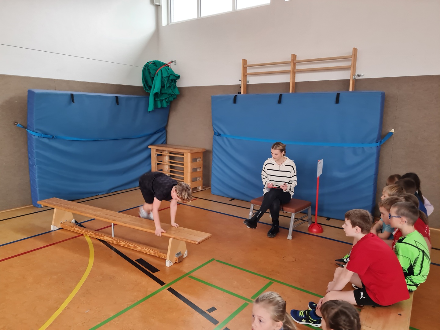 In klassengemischten Gruppen meisterten die Kinder gemeinsam mit einer Lehrerin oder Erzieherin jede Station. Dabei wurde lautstark angefeuert, unterstützt und mitgefiebert – eine tolle Stimmung in der ganzen Turnhalle und in den Horträumen. Zwischendurch gab es eine „Pause-Station“, um kurz zu entspannen oder zu spielen.