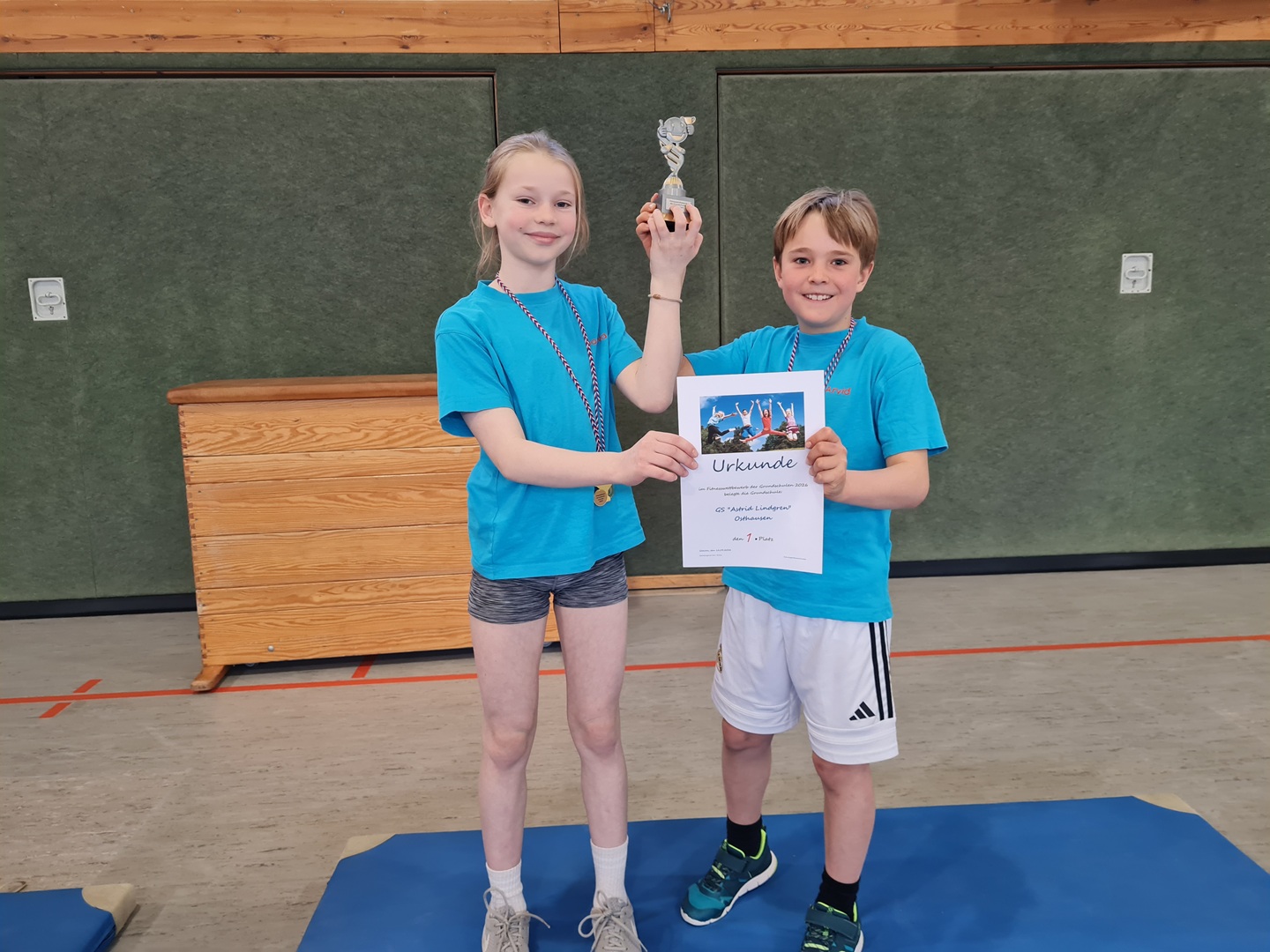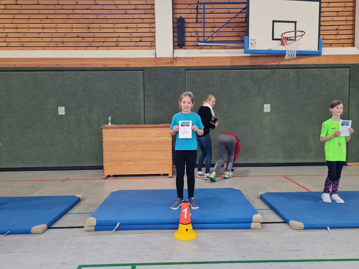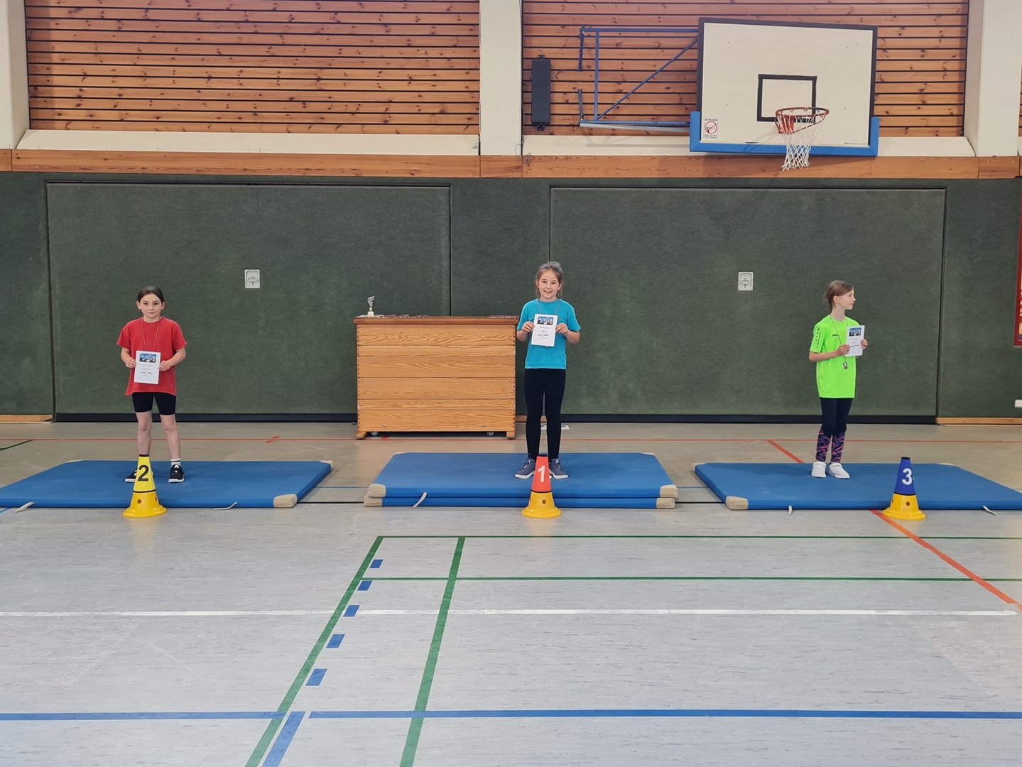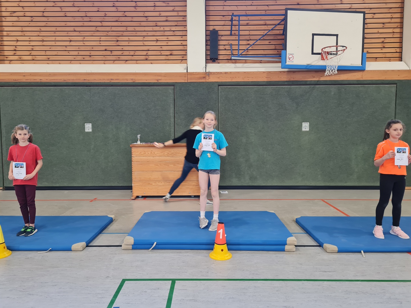 Dann wurde es besonders spannend: Bei den Mädchen der 3. Klasse stand Mara ganz oben auf dem Treppchen – ein großartiger 1. Platz! Und gleich noch einmal durften wir jubeln, denn Sophia aus der 4. Klasse gewann ebenfalls ihre Wertung. Zum Abschluss schaffte es Arvid mit einem 3. Platz ebenfalls auf das Podest.