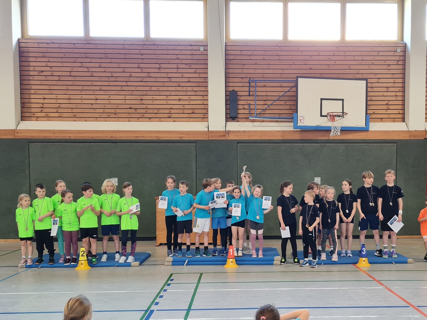 Nach dem Wettkampf begann das spannende Warten auf die Auswertung. Zunächst wurden die Einzelwertungen jeder Klassenstufe bekannt gegeben. Die jeweils sechs besten Athletinnen und Athleten wurden zur Siegerehrung nach vorn gerufen.
