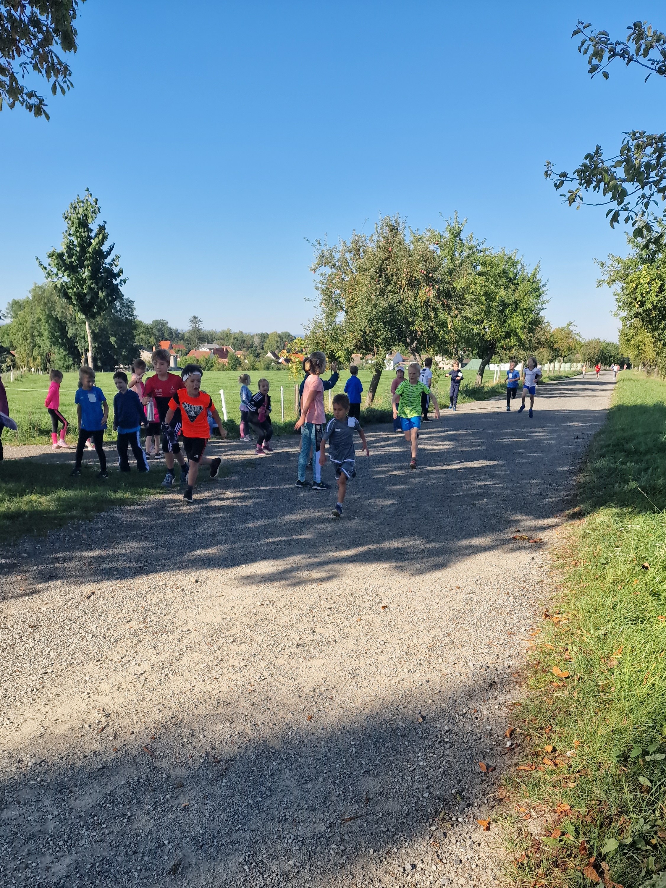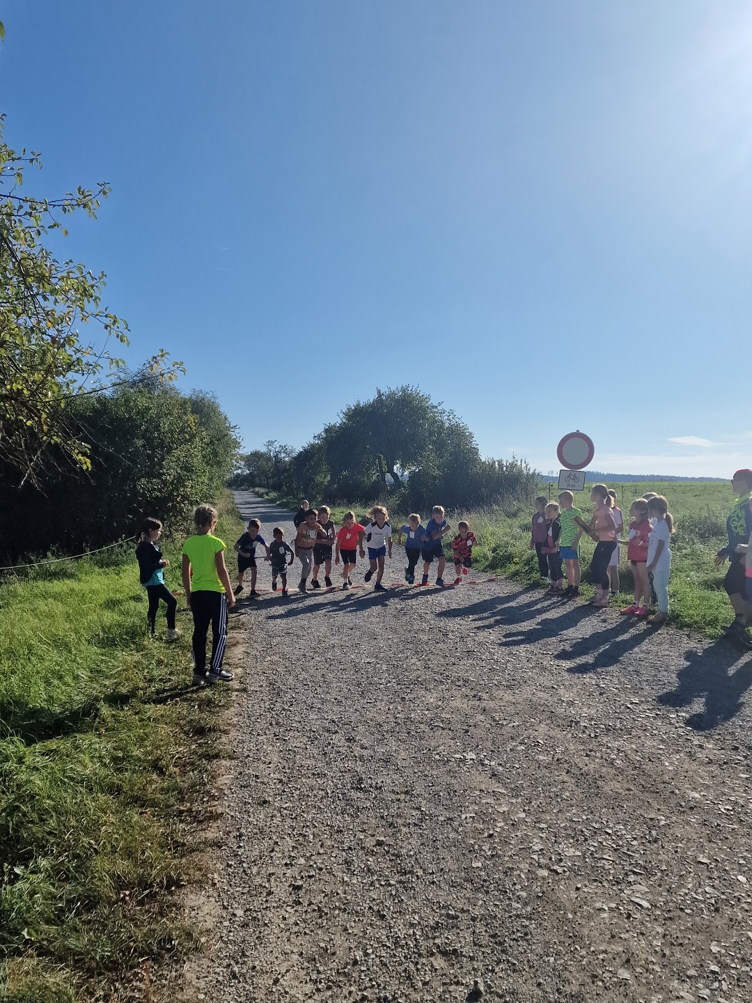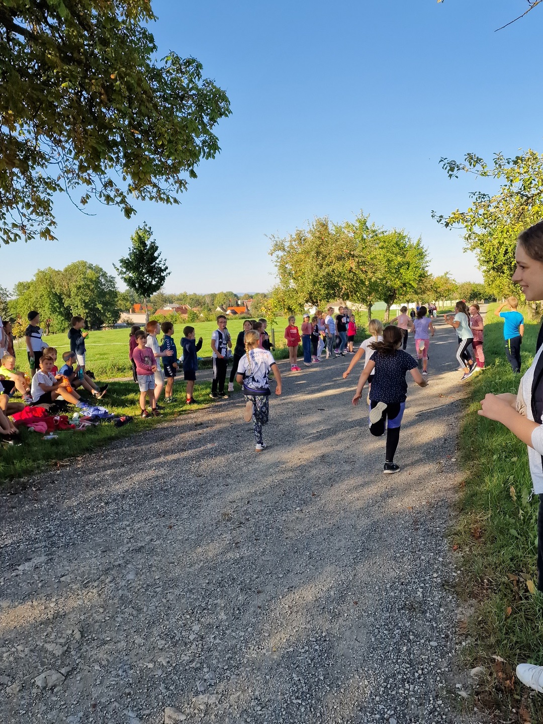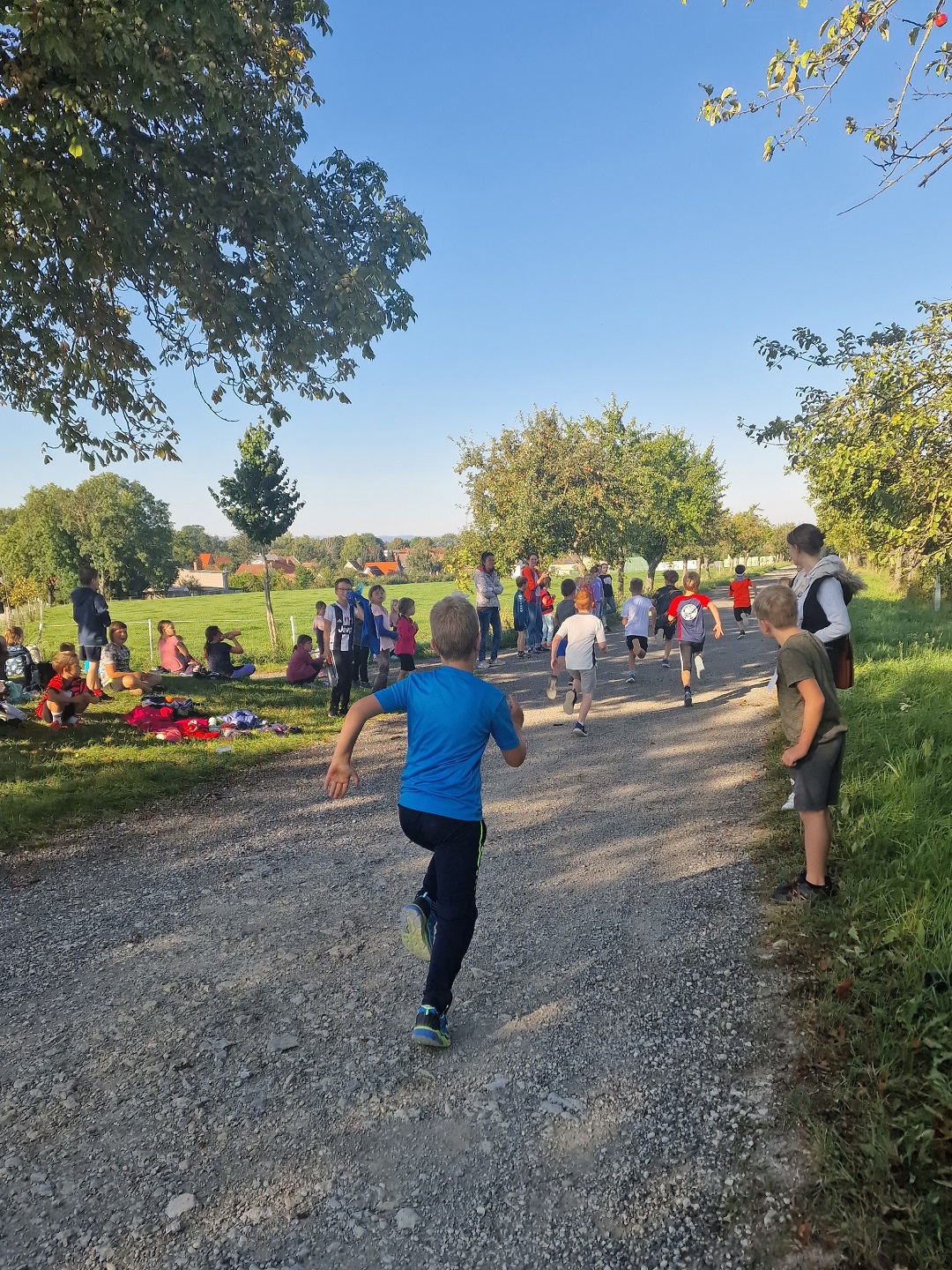 Für unseren jährlichen Herbst-Crosslauf nutzten wir am Dienstag, 26.September das sonnige Herbst-Wetter. Auch dieses Mal wurde wieder auf unserer traditionellen Herbst-Cross-Strecke an der großen Kastanie gelaufen. Nach dem Frühstück machten wir uns gestärkt und gut ausgerüstet mit kurzen und langen Sportsachen auf den Weg dorthin. Bevor die Läufe begannen, wurde eine gemeinsame Erwärmung durchgeführt.