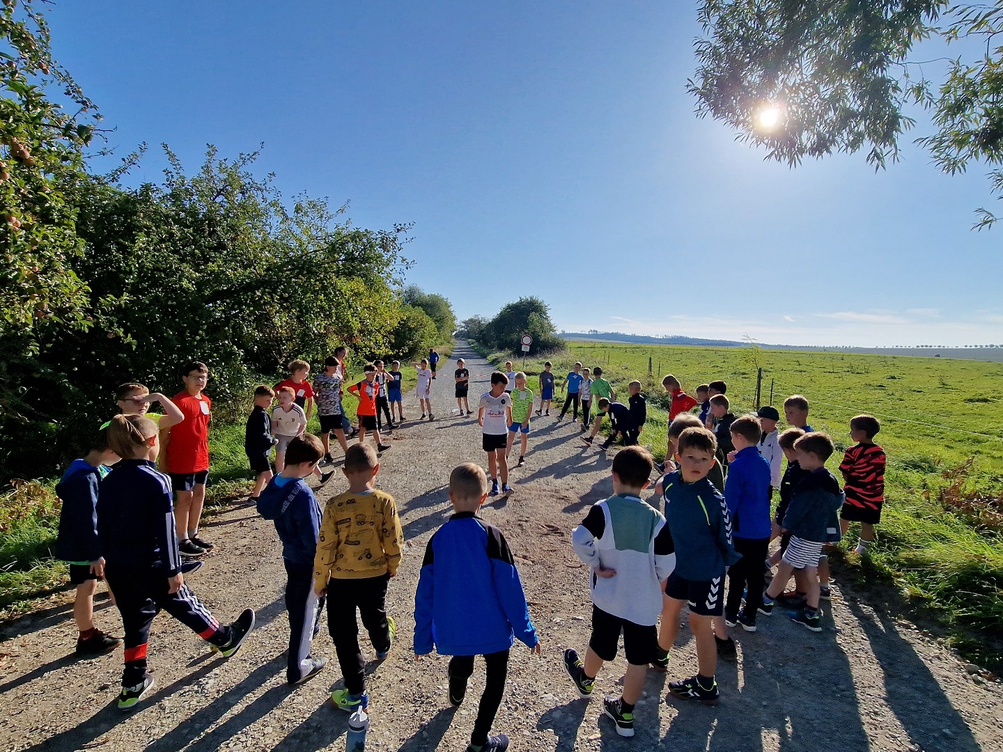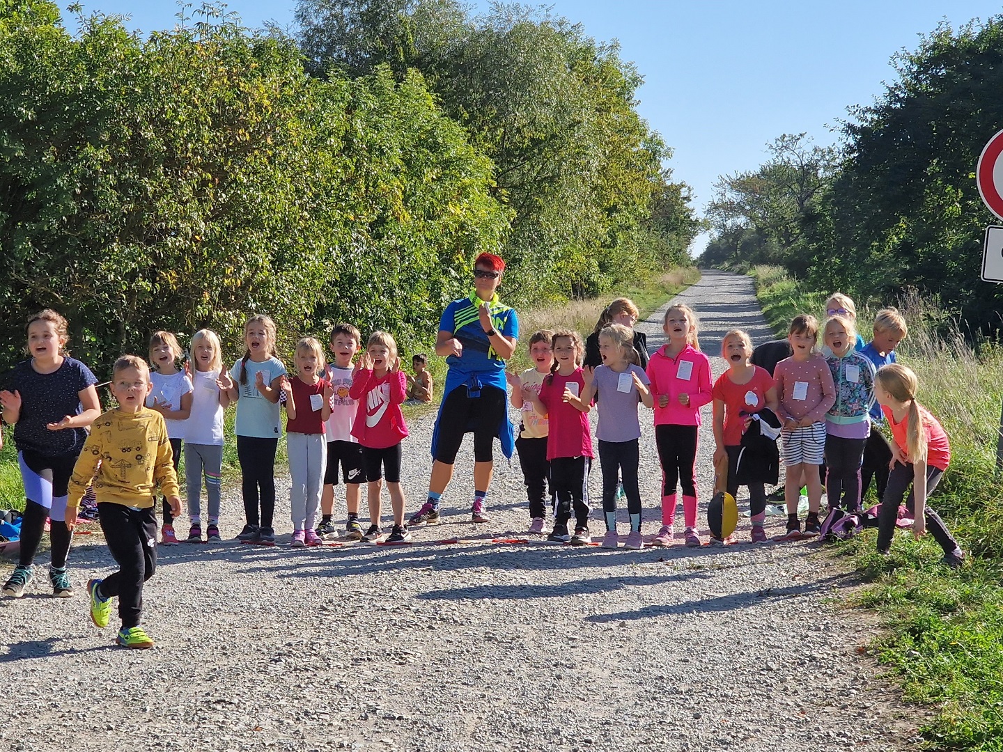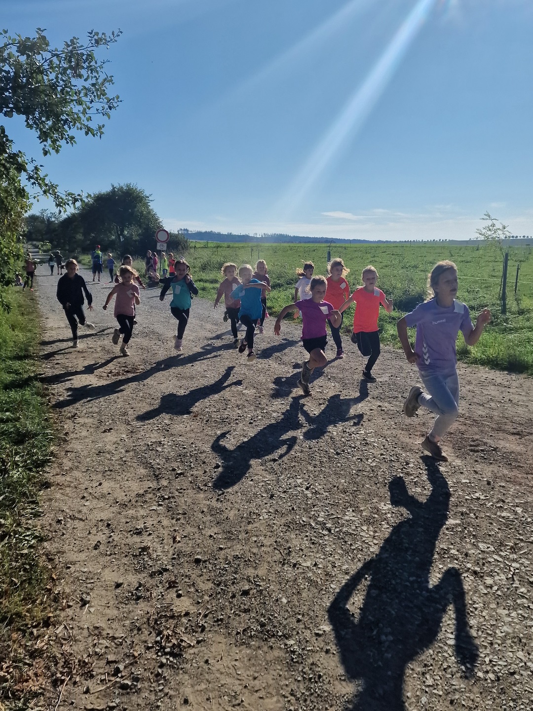 Für unseren jährlichen Herbst-Crosslauf nutzten wir am Dienstag, 26.September das sonnige Herbst-Wetter. Auch dieses Mal wurde wieder auf unserer traditionellen Herbst-Cross-Strecke an der großen Kastanie gelaufen. Nach dem Frühstück machten wir uns gestärkt und gut ausgerüstet mit kurzen und langen Sportsachen auf den Weg dorthin. Bevor die Läufe begannen, wurde eine gemeinsame Erwärmung durchgeführt.