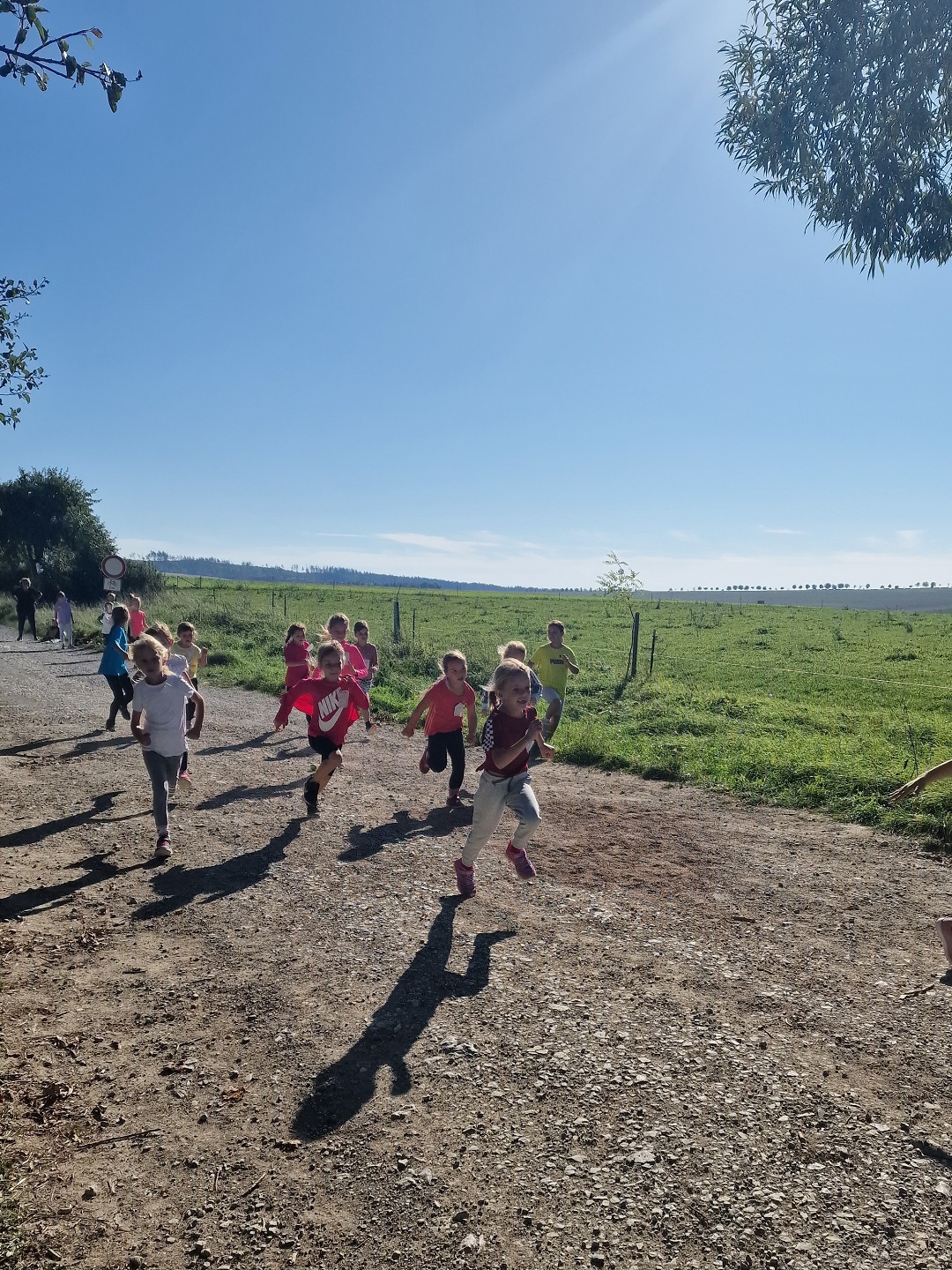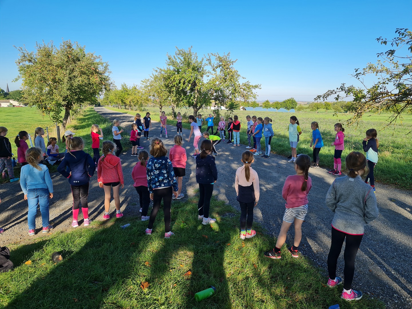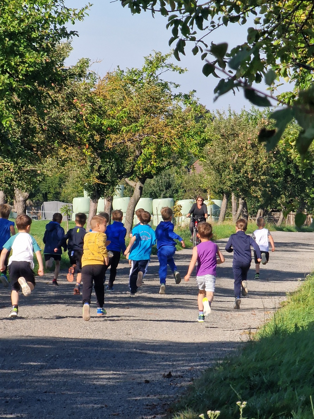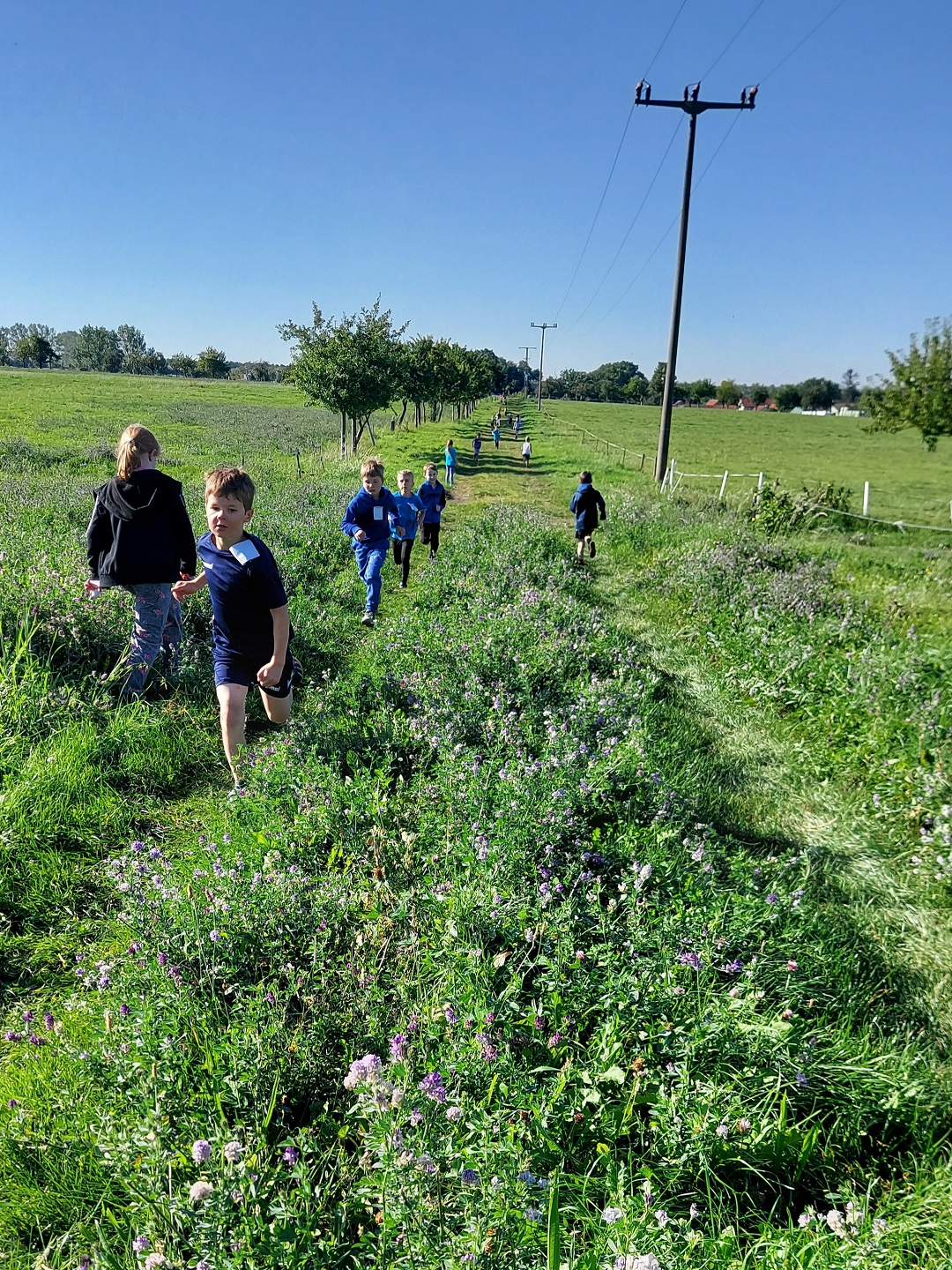 Für unseren jährlichen Herbst-Crosslauf nutzten wir am Dienstag, 26.September das sonnige Herbst-Wetter. Auch dieses Mal wurde wieder auf unserer traditionellen Herbst-Cross-Strecke an der großen Kastanie gelaufen. Nach dem Frühstück machten wir uns gestärkt und gut ausgerüstet mit kurzen und langen Sportsachen auf den Weg dorthin. Bevor die Läufe begannen, wurde eine gemeinsame Erwärmung durchgeführt.