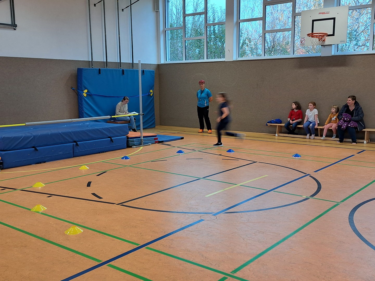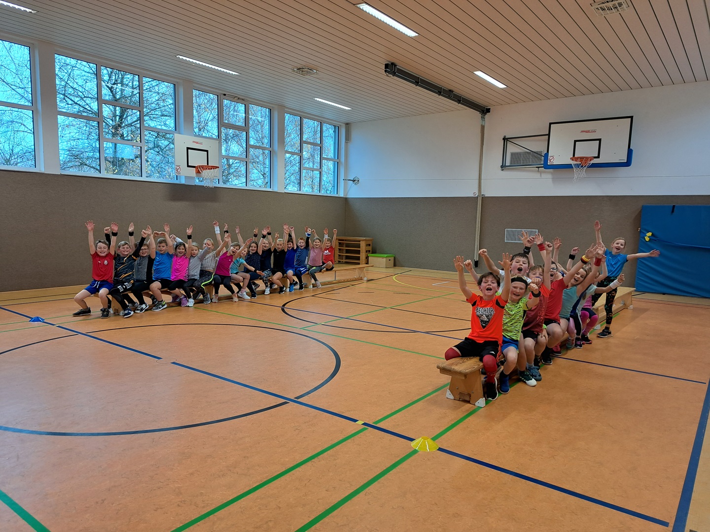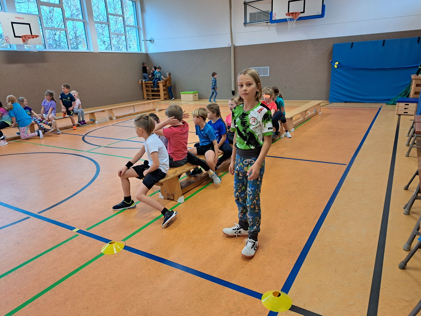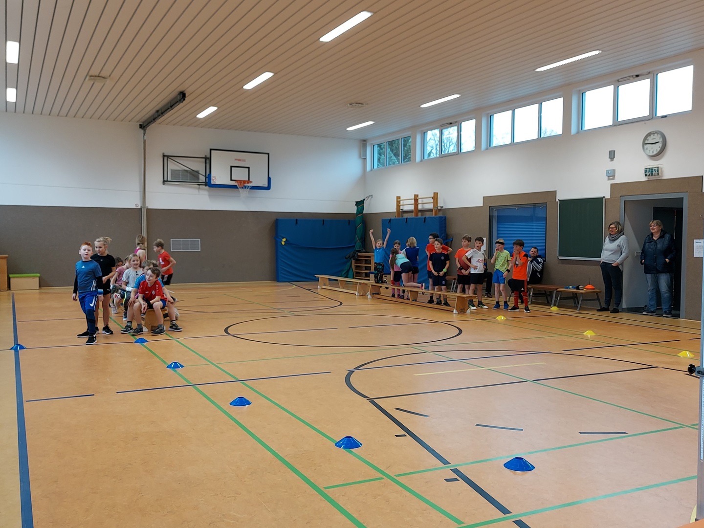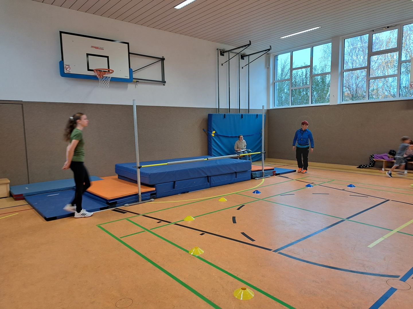 Am Mittwoch, 22. November 2023 fand für alle Kinder, die gern hochspringen, unsere Schulmeisterschaft im Hochsprung statt. Es fanden sich 61 Kinder aus den Klassen 1 - 4 in unserer Turnhalle ein, um sich diesem Wettkampf zu stellen. Darüber freute sich die Sportlehrerin, denn so viele Teilnehmer gab es bisher noch nie. Die anderen Schüler waren zum Zuschauen und Anfeuern ebenfalls dabei. Es begannen die Schüler der 1 + 2 Klasse, danach sprangen die Dritt – und Viertklässler.