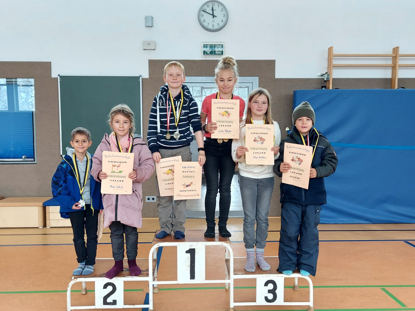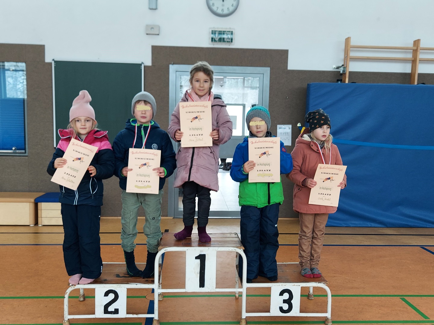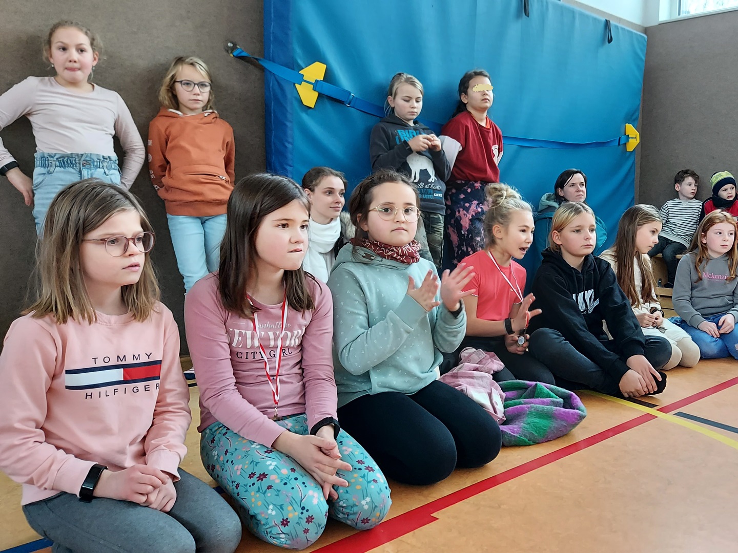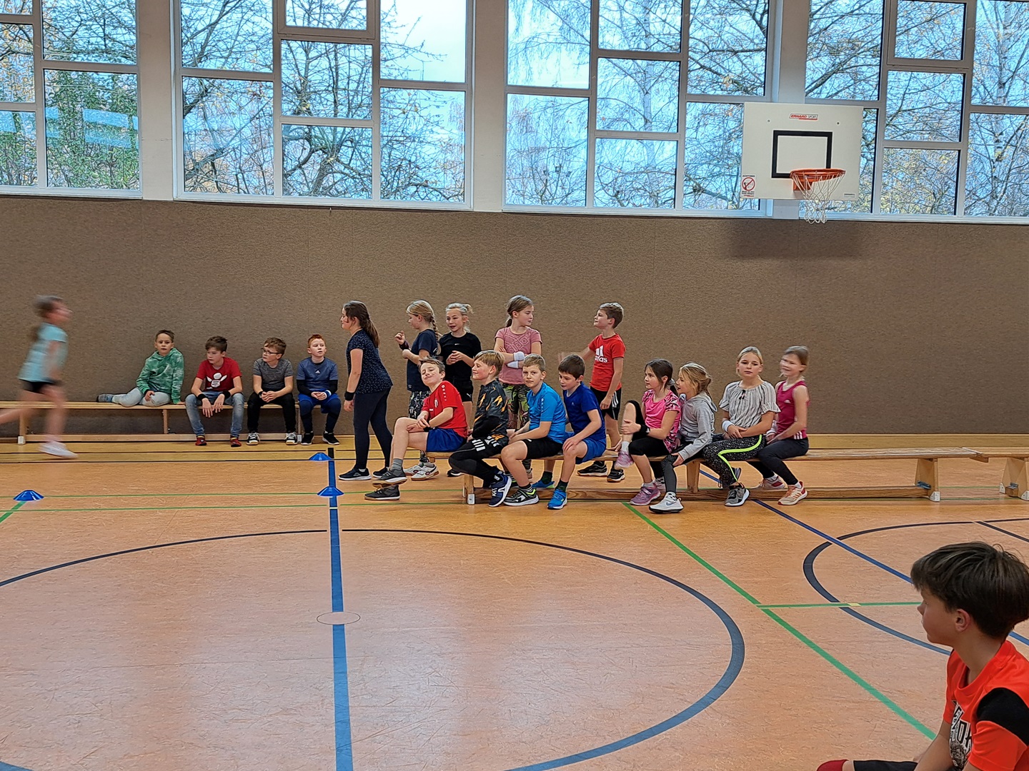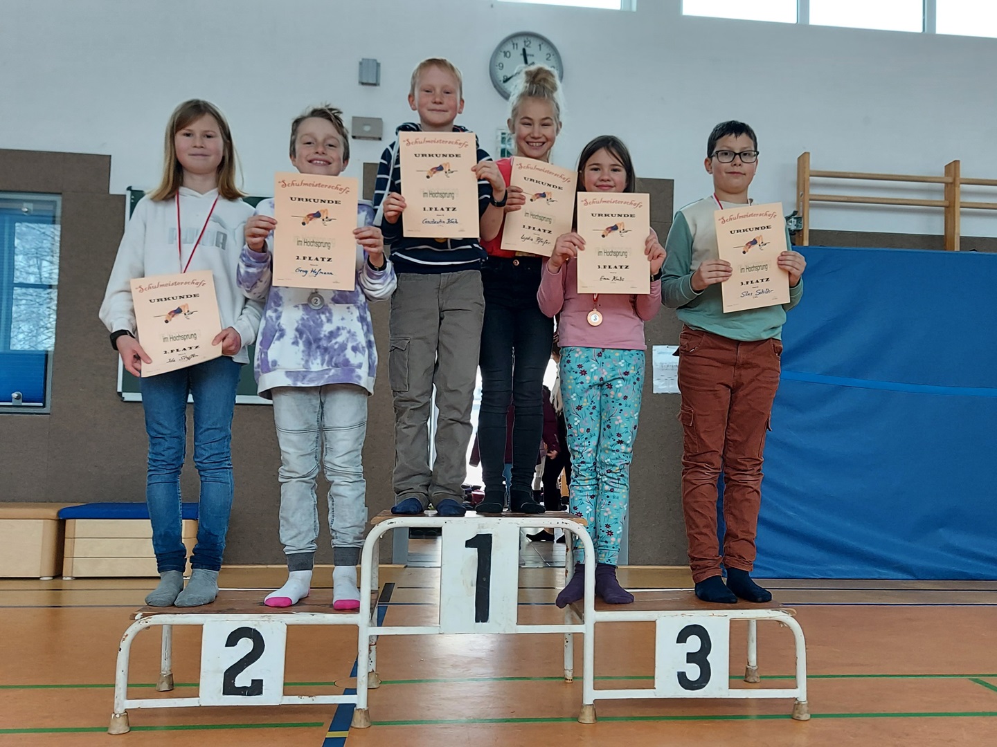 Am Mittwoch, 22. November 2023 fand für alle Kinder, die gern hochspringen, unsere Schulmeisterschaft im Hochsprung statt. Es fanden sich 61 Kinder aus den Klassen 1 - 4 in unserer Turnhalle ein, um sich diesem Wettkampf zu stellen. Darüber freute sich die Sportlehrerin, denn so viele Teilnehmer gab es bisher noch nie. Die anderen Schüler waren zum Zuschauen und Anfeuern ebenfalls dabei. Es begannen die Schüler der 1 + 2 Klasse, danach sprangen die Dritt – und Viertklässler.