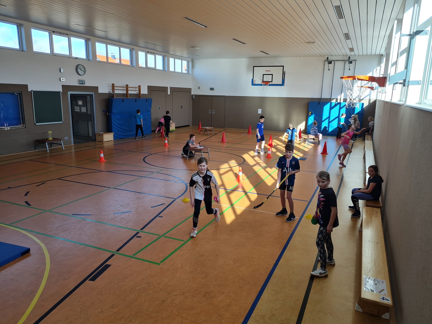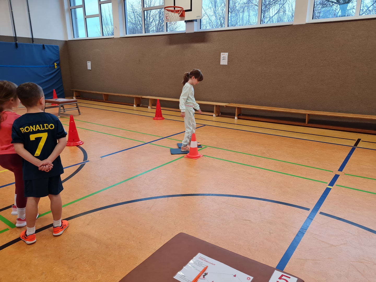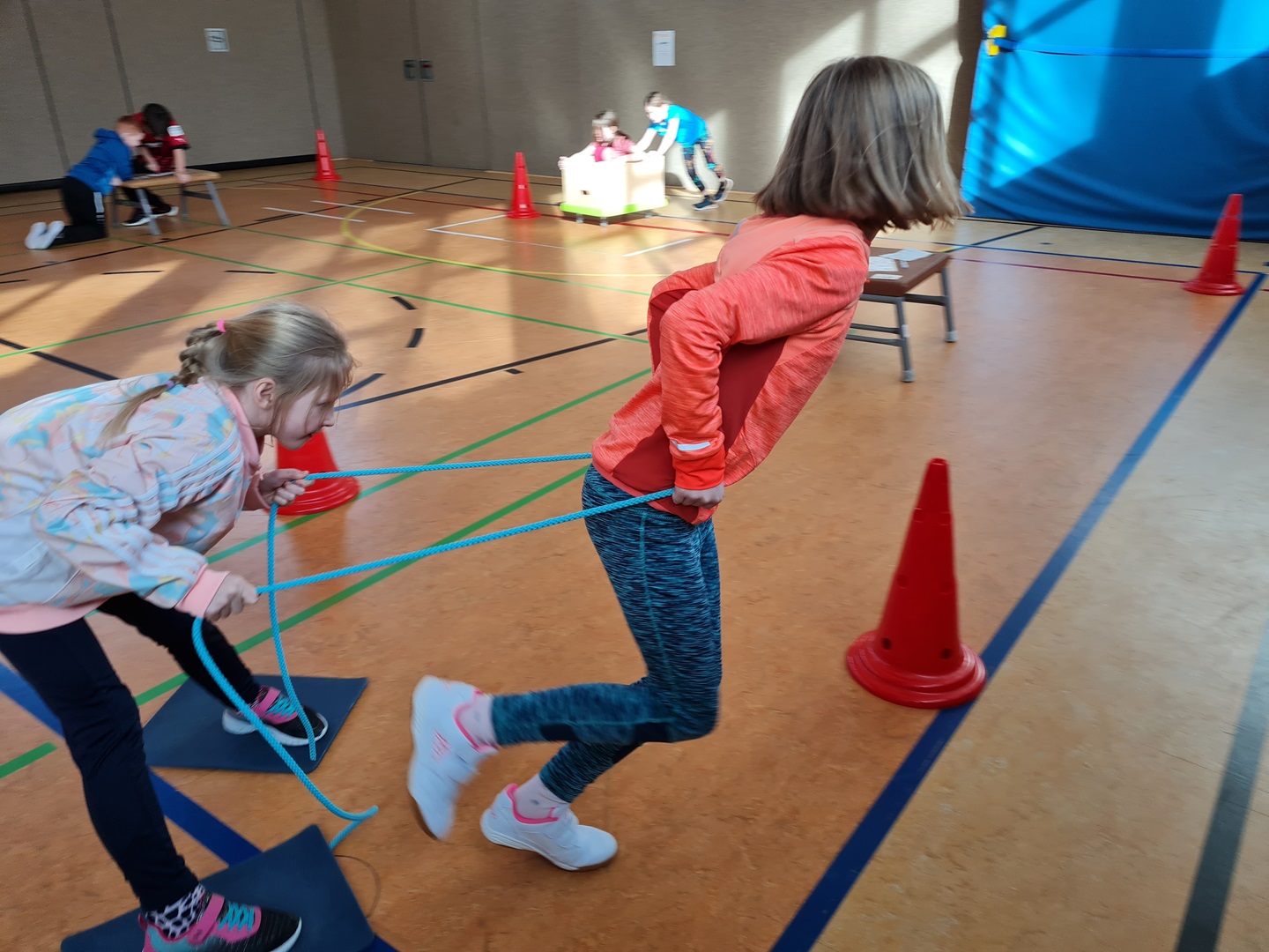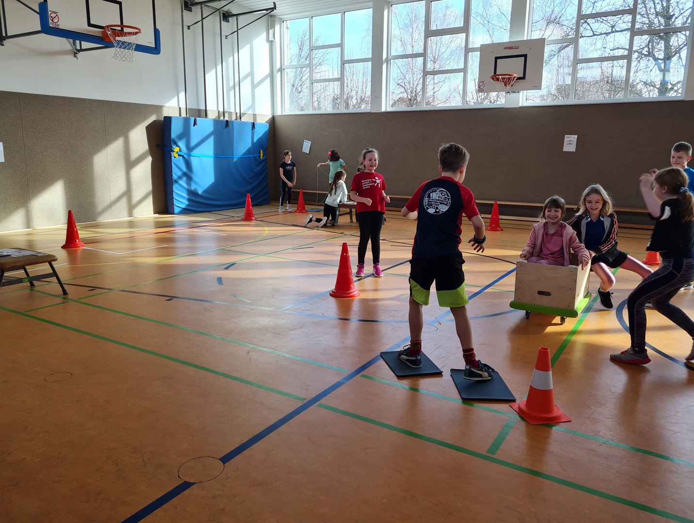 Es wurden hierbei die Runden oder die Punkte gezählt und in die Laufzettel eingetragen. Beim Durchlauf der verschiedenen Stationen hatten die Kinder viel Spaß und es wurde viel gelacht. Allen waren mit großer Begeisterung dabei und überrascht, wie schnell die Zeit verging.