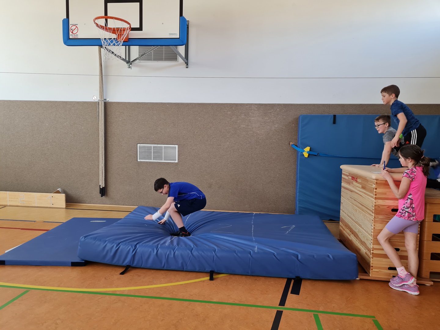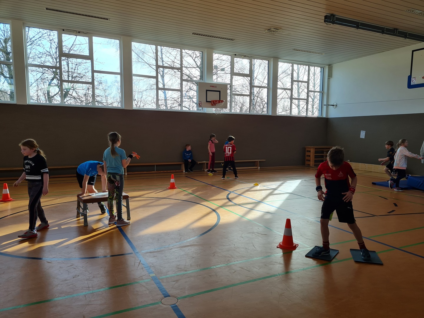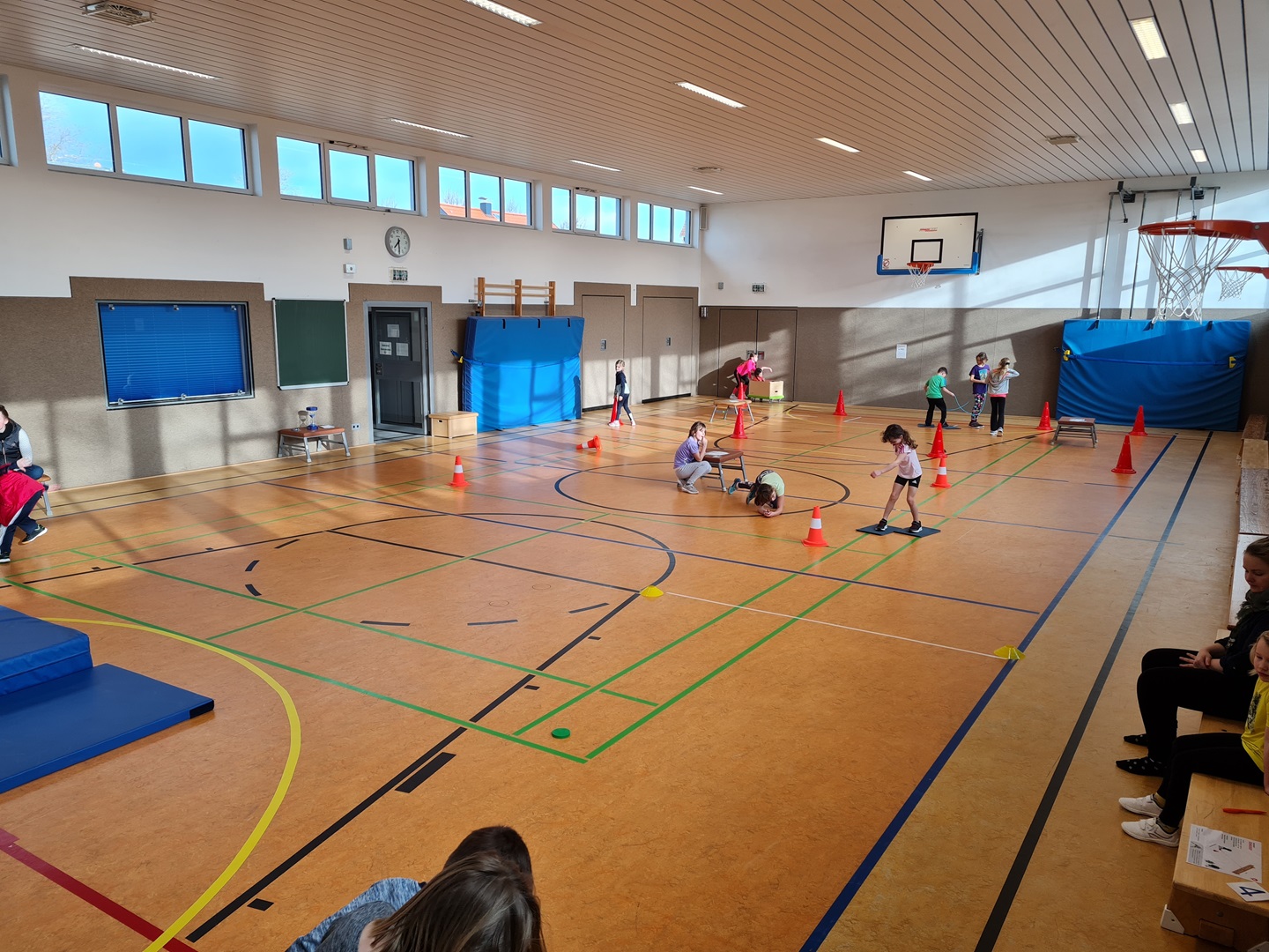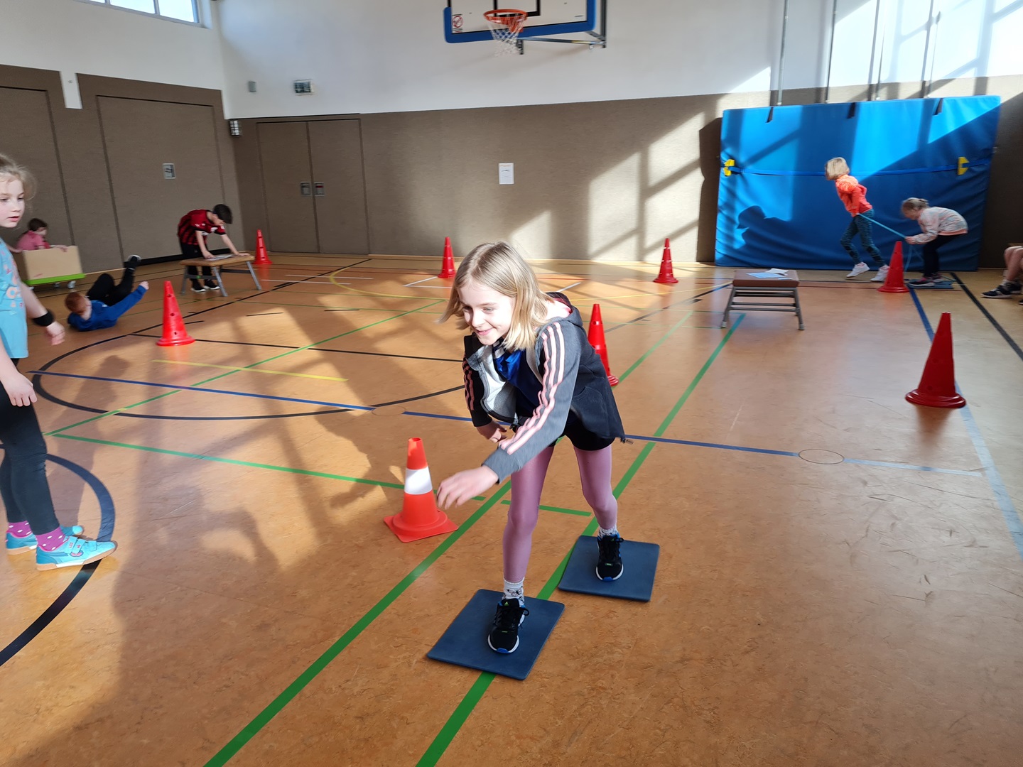 Es wurden hierbei die Runden oder die Punkte gezählt und in die Laufzettel eingetragen. Beim Durchlauf der verschiedenen Stationen hatten die Kinder viel Spaß und es wurde viel gelacht. Allen waren mit großer Begeisterung dabei und überrascht, wie schnell die Zeit verging.