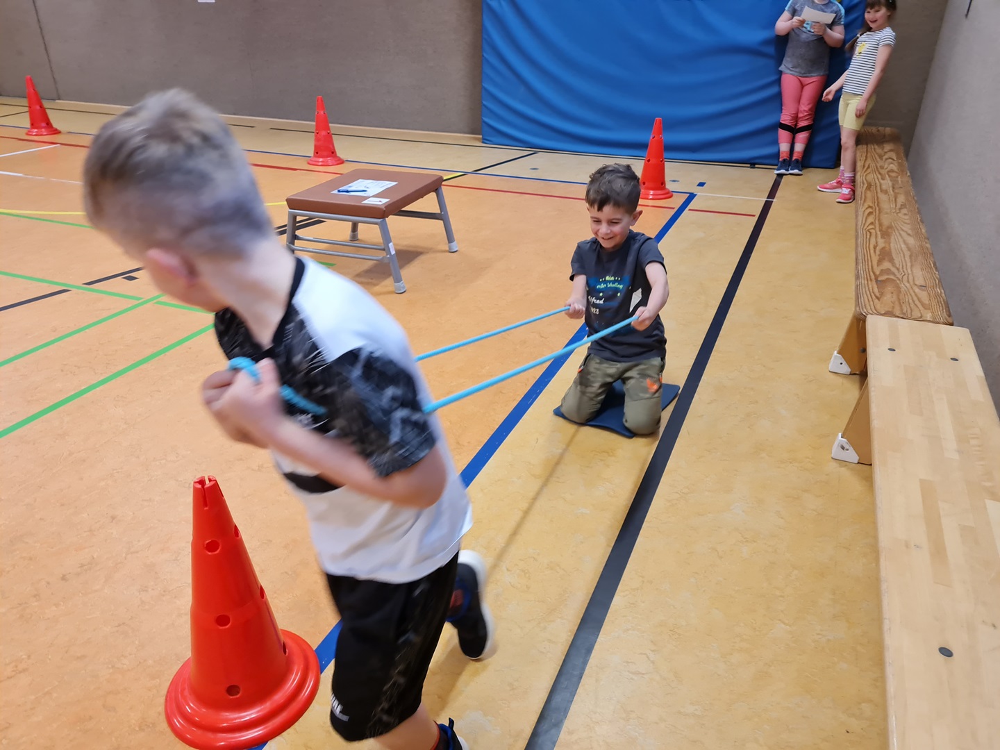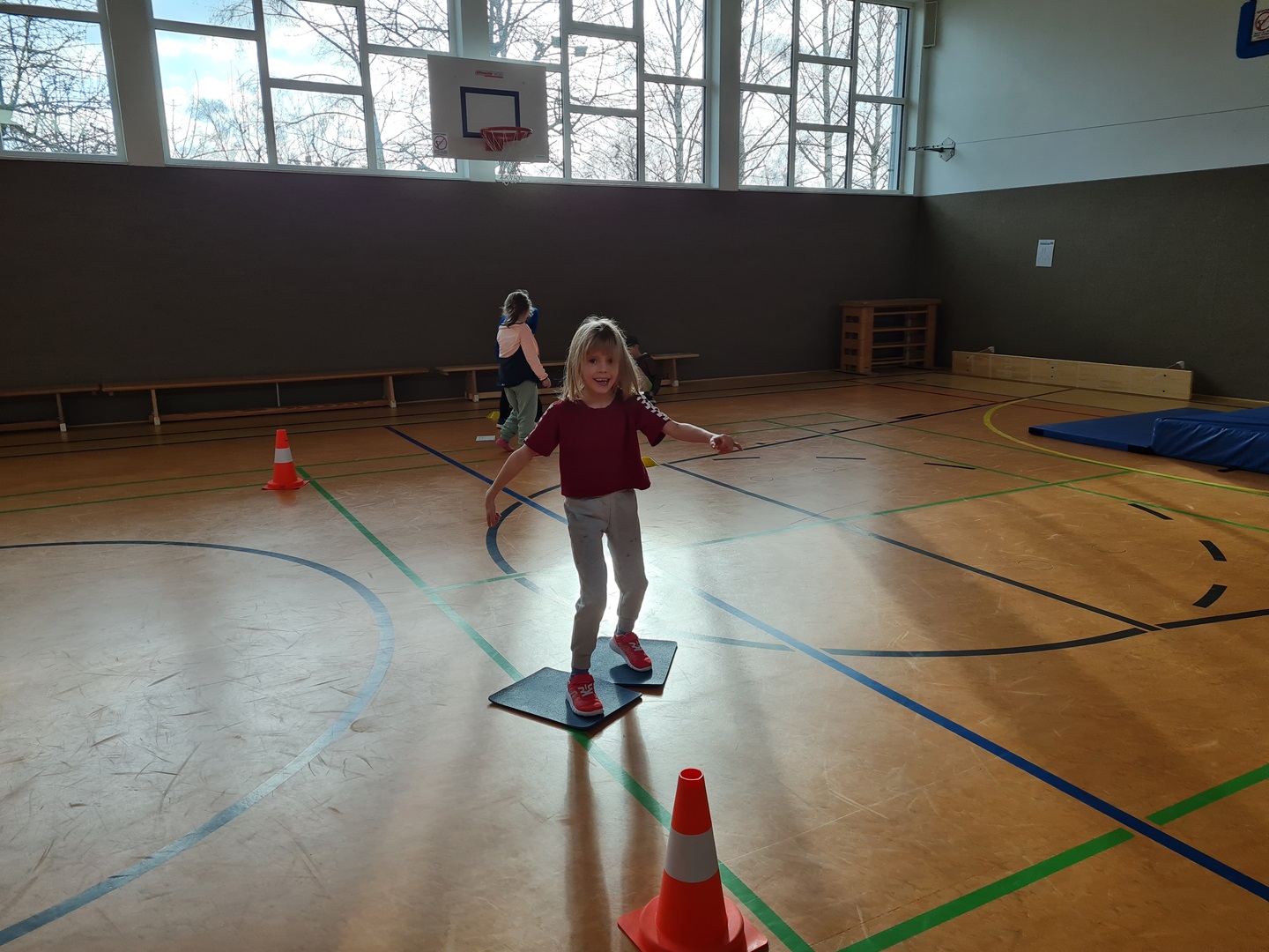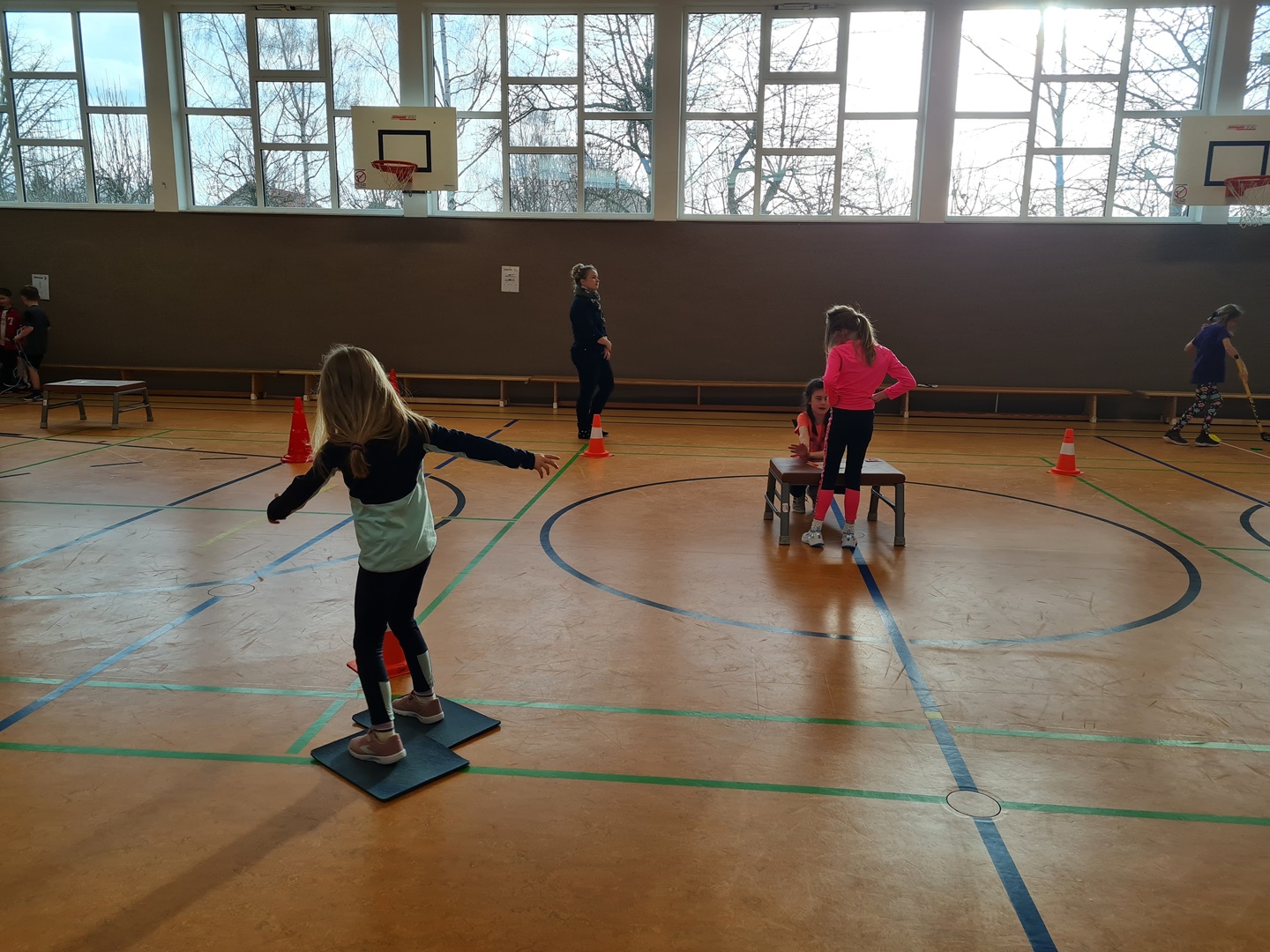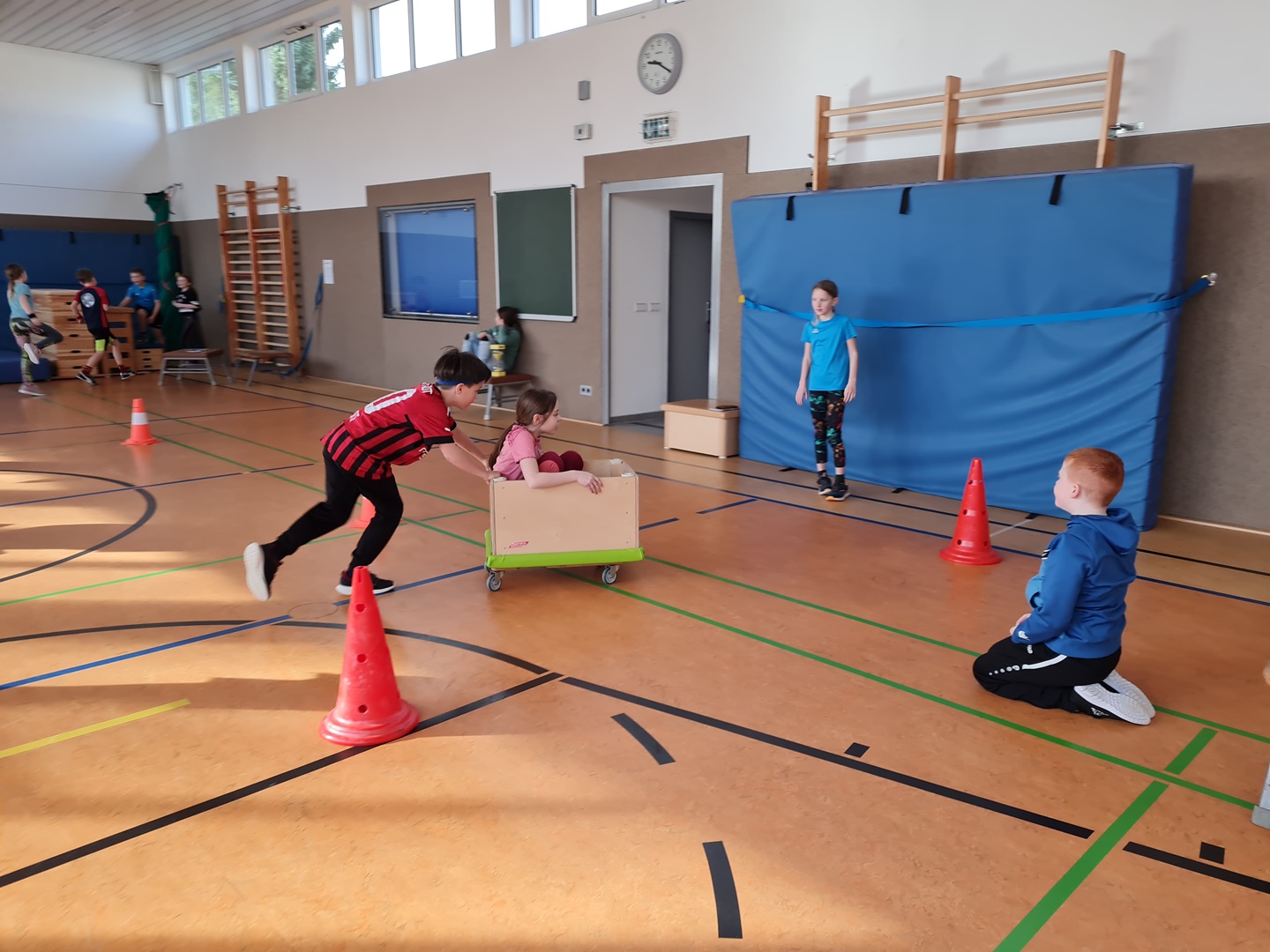 Es wurden hierbei die Runden oder die Punkte gezählt und in die Laufzettel eingetragen. Beim Durchlauf der verschiedenen Stationen hatten die Kinder viel Spaß und es wurde viel gelacht. Allen waren mit großer Begeisterung dabei und überrascht, wie schnell die Zeit verging.