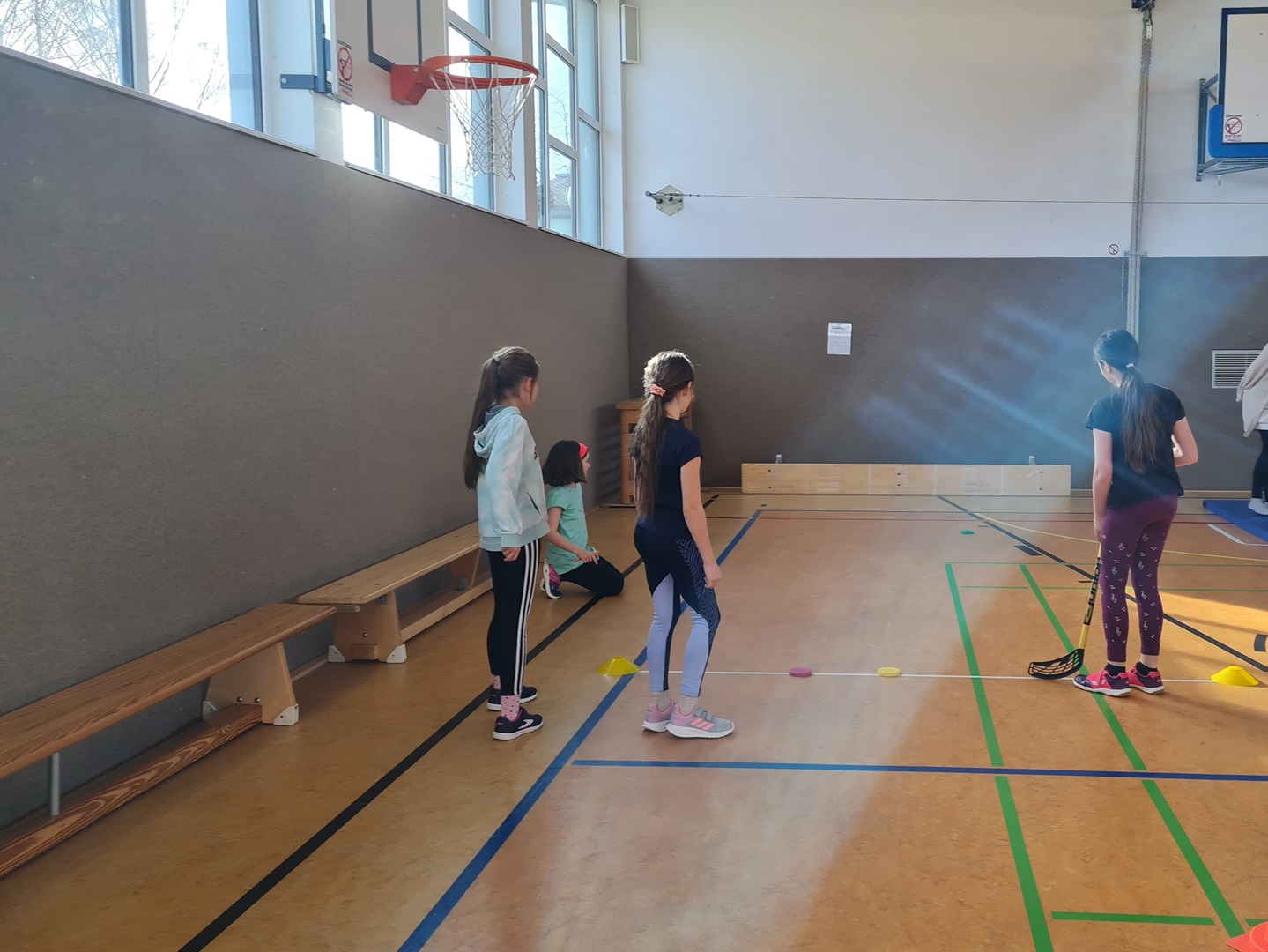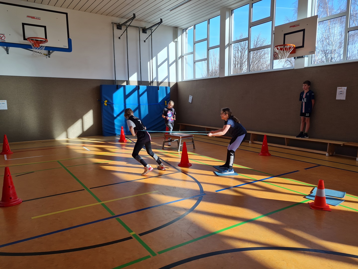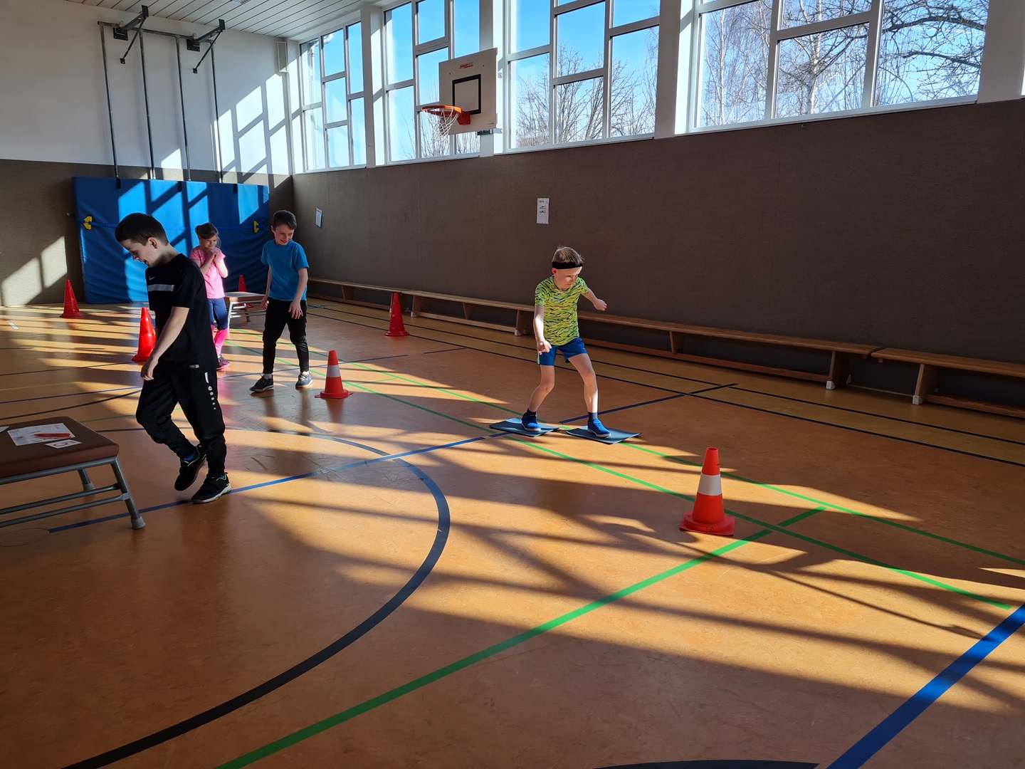 Heute fanden sich nacheinander alle Klassen in der Turnhalle ein und führten eine kleine Winterolympiade durch.