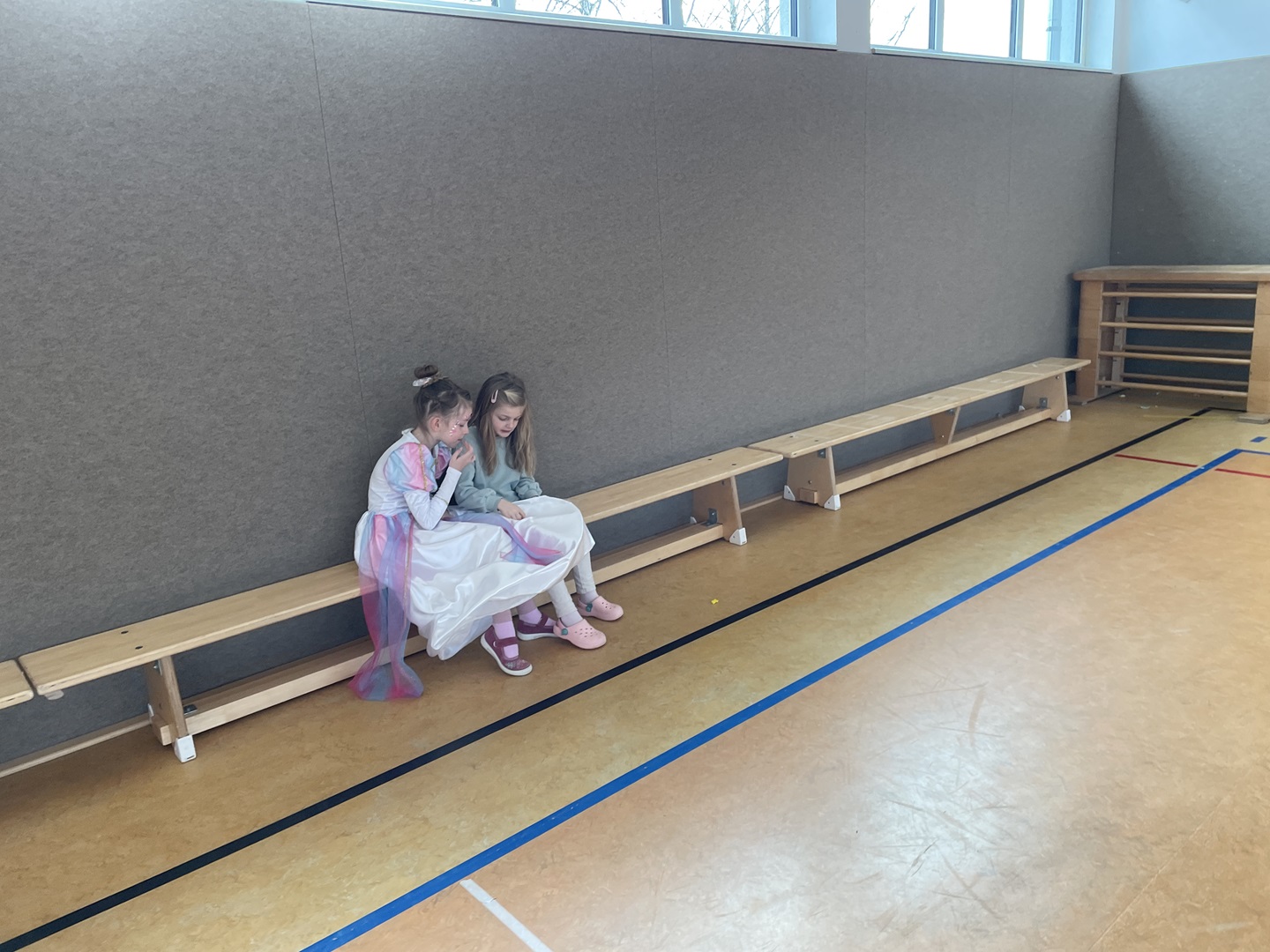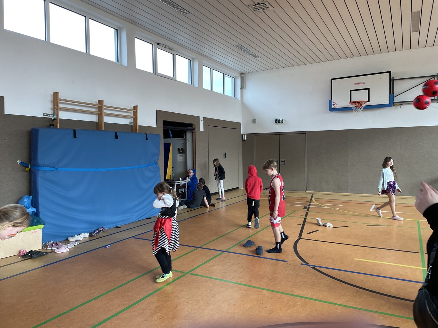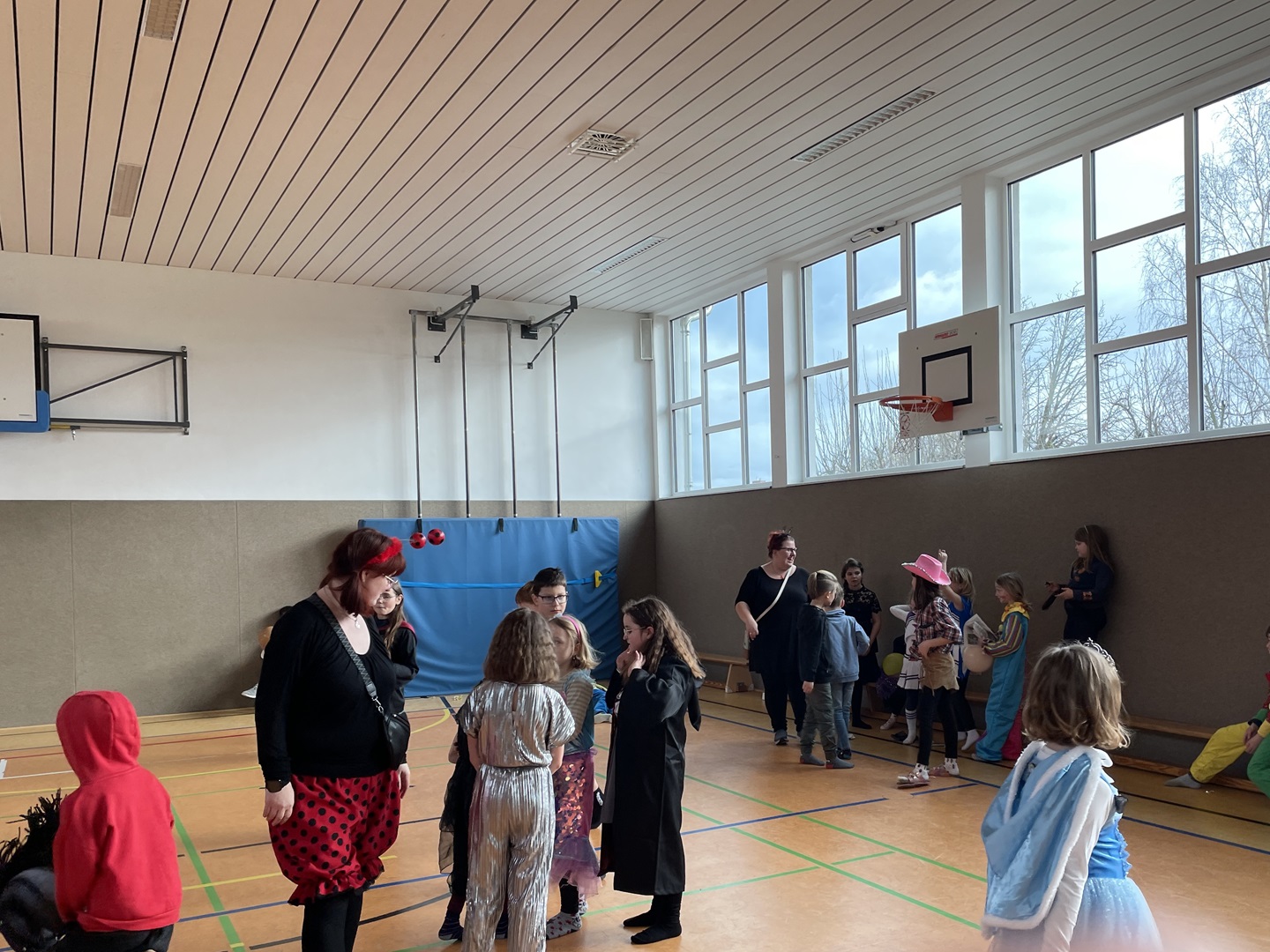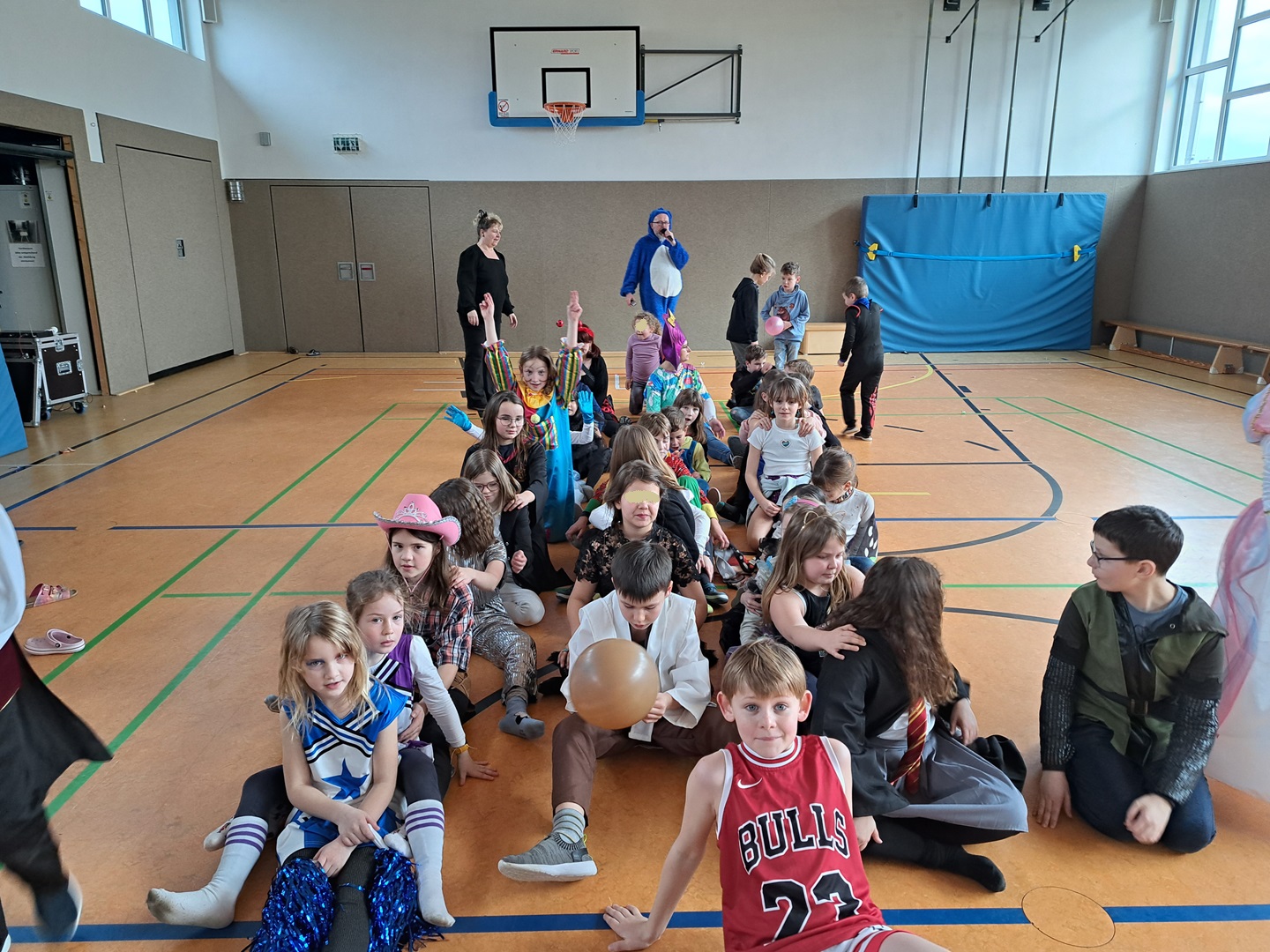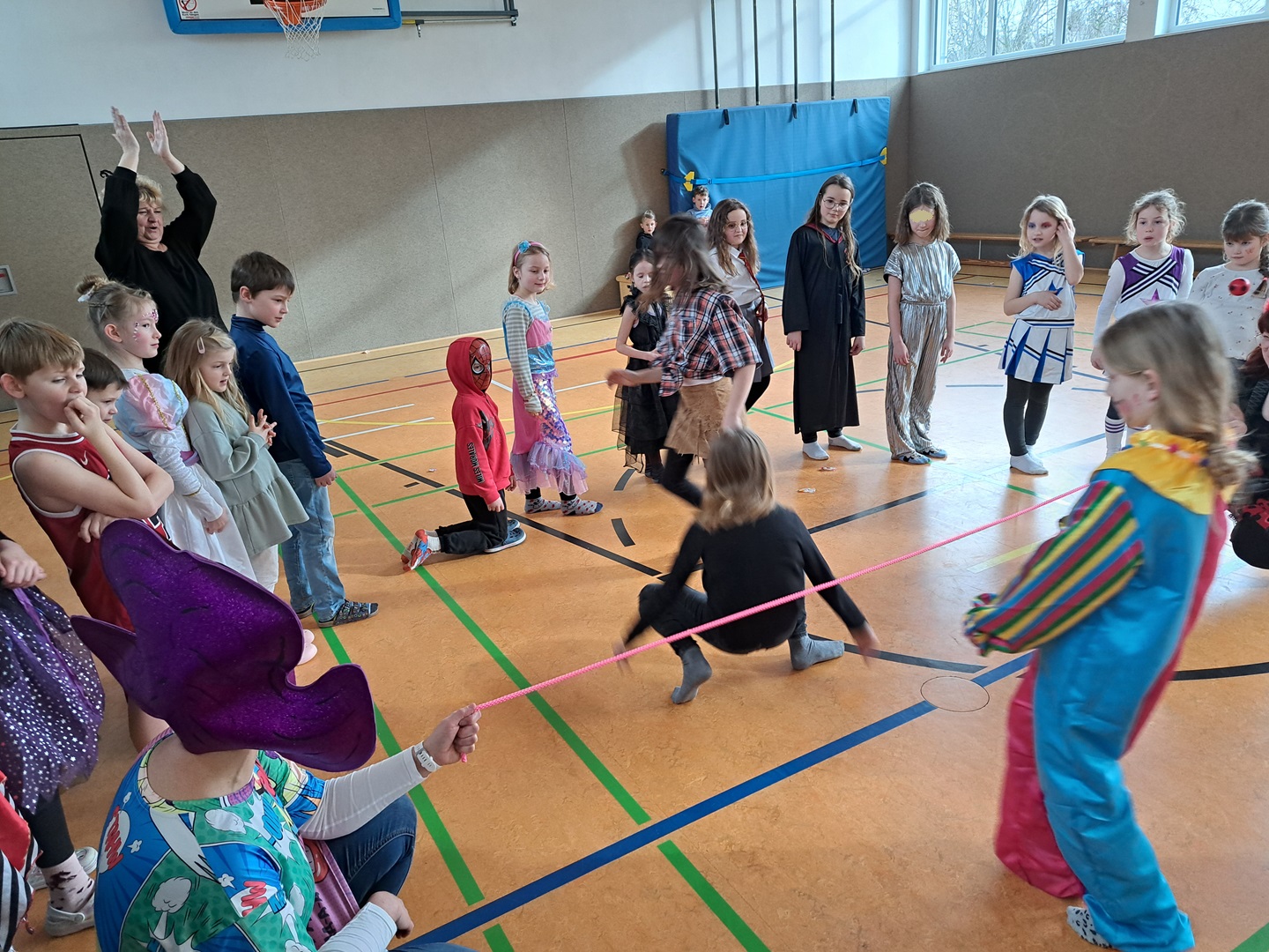 Am Montag in den Ferien feierten wir eine Faschingsparty. Es kamen fast alle Kinder mit tollen Kostümen. In der Turnhalle macht der blaue SchreiBär coole Musik. Wir spielten Zeitungstanz, Feuer, Wasser, Sand und tanzten Limbo. Zwischendurch wurden viele leckeren Bonbons geworfen. Auf einem Laufsteg zeigte jeder sein Kostüm. Eine Jury, bestehend aus Frau Müller und 3 nicht verkleideten Kindern, bewerteten die Kostüme und entschieden sich für 3 Paare mit gleichen Kostümen, Cheerleader , Wednesday mit den eiskalten Händchen. Zum Schluss bekamen alle Kinder einen kleinen Preis.