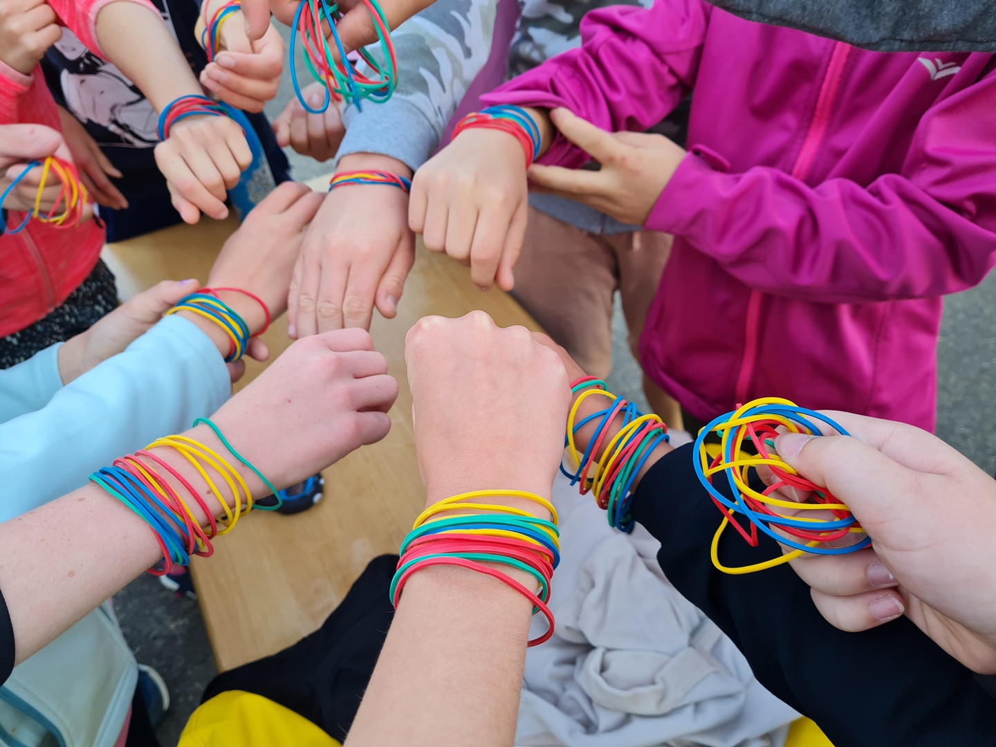 Die Strecke betrug 300 m auf dem Schulhof – inklusive Wurzeln, Hügeln und Baumgruppen, ganz wie bei einem richtigen Crosslauf. Nach jeder absolvierten Runde gab es ein auffälliges Gummiband am Handgelenk, damit die geschafften Runden leicht gezählt werden konnten. Jeder Schüler rannte, joggte oder ging je nach Vermögen – alle waren motiviert. Erreicht wurden bis zu 20 Runden, das entspricht 6.000 m – eine herausragende Leistung!