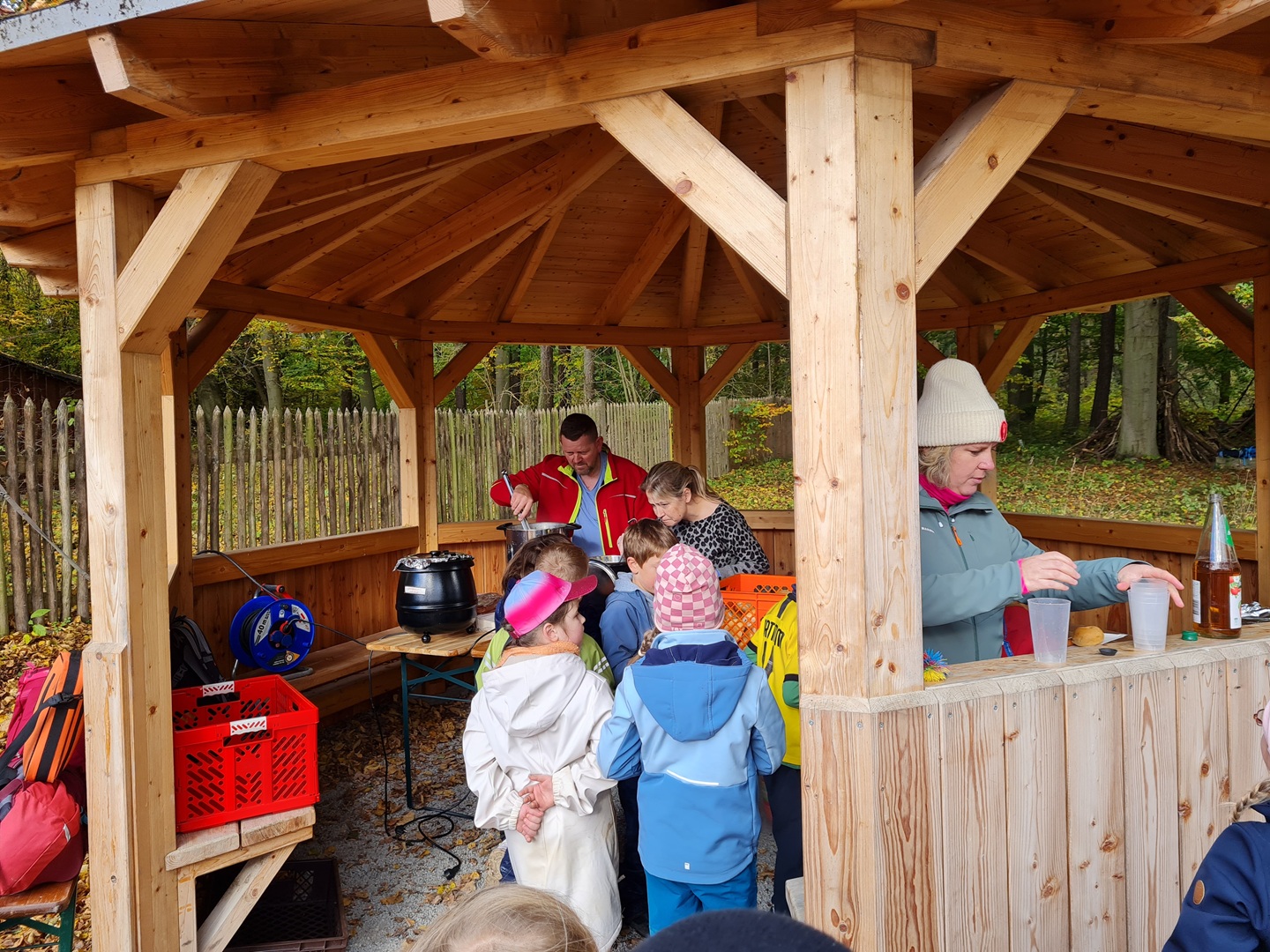 Nach den erfolgreichen Pflanz- und Spielaktionen wartete an beiden Tagen ein leckeres Mittagessen im Wald auf alle Kinder. Es gab Erbsensuppe mit Wiener und Brötchen – ein herzliches Dankeschön an die fleißigen Eltern, die das Essen vorbereitet und ausgegeben haben! Zum Abschluss erhielt jedes Kind als Anerkennung für seinen Einsatz eine „Waldretter-Medaille“. Frisch gestärkt traten alle den Heimweg zur Schule an – mit vielen Eindrücken und dem guten Gefühl, etwas für den Wald getan zu haben.