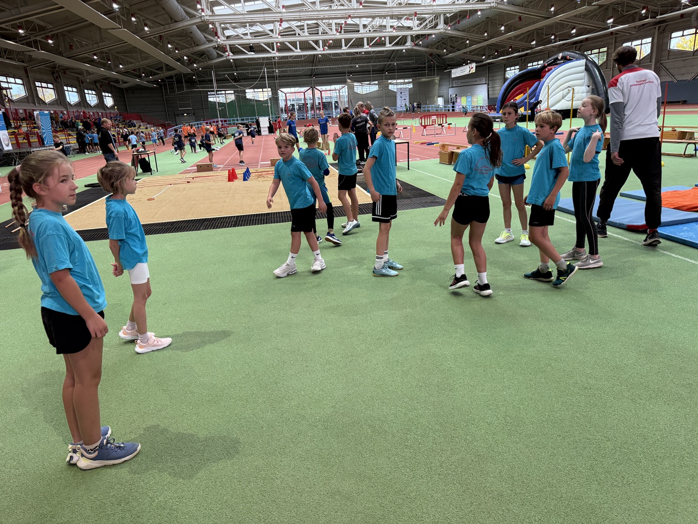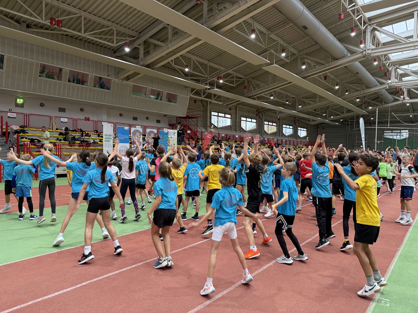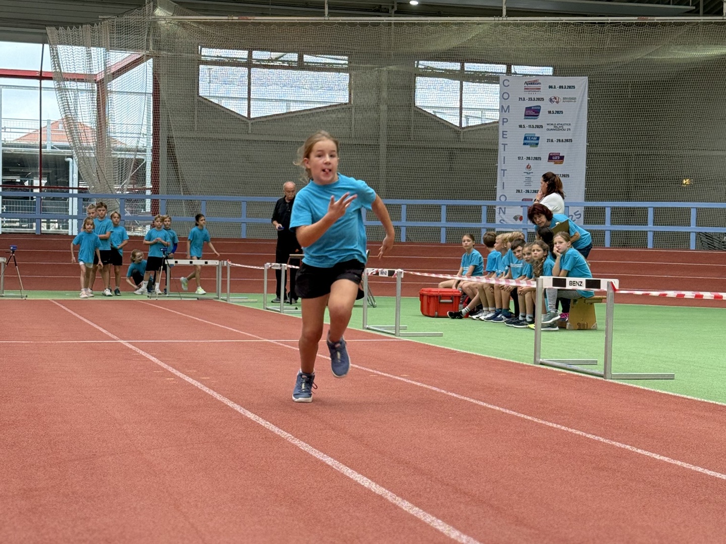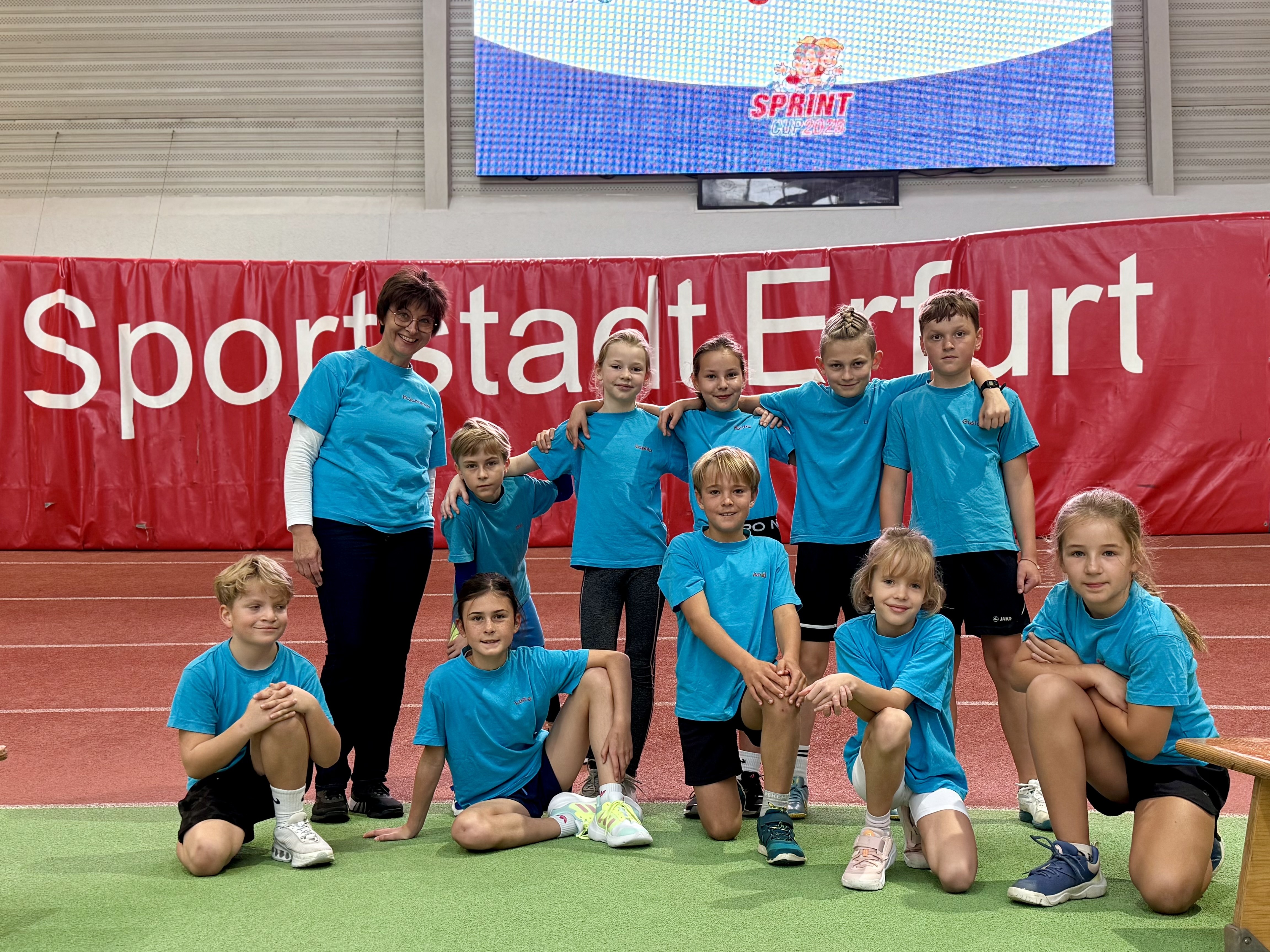 Am Donnerstag, 23.10.2025 erlebte der „SprintCup“ – die schnellste Schule Thüringens“ unter den Organisatoren Julian Reus und Kai Röckert in der Hartwig-Gauder-Leichtathletikhalle in Erfurt bereits seine sechste Auflage. Unsere Schule durfte zum zweiten Mal daran teilnehmen. Zehn Grundschulen und zehn weiterführende Schulen stellten sich den fünf Stationen mit dem finalen Staffellauf, um die schnellste Schule Thüringens zu ermitteln. Gewetteifert wurde nicht nur im klassischen Sprint, sondern an fünf sprintspezifischen Stationen, an denen neben konditionellen Fähigkeiten, wie Kraft & Schnelligkeit, auch koordinative Fähigkeiten, wie die Reaktions- und Rhythmisierungsfähigkeit, überprüft wurden. Die anderen Grundschulen kamen aus Eisenach, Schleusingen, Walschleben, Oberlind, Berlstedt, Greußen, Gera, Langenleuba-Niederhain und Aschara.