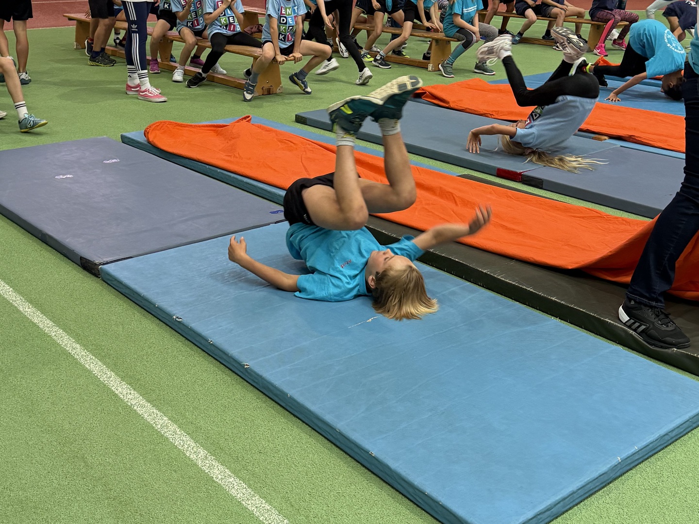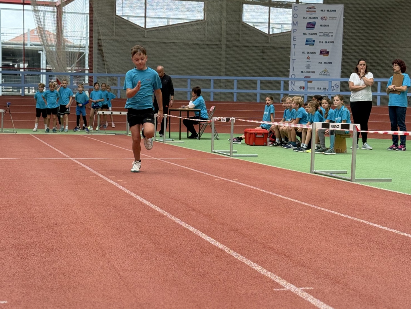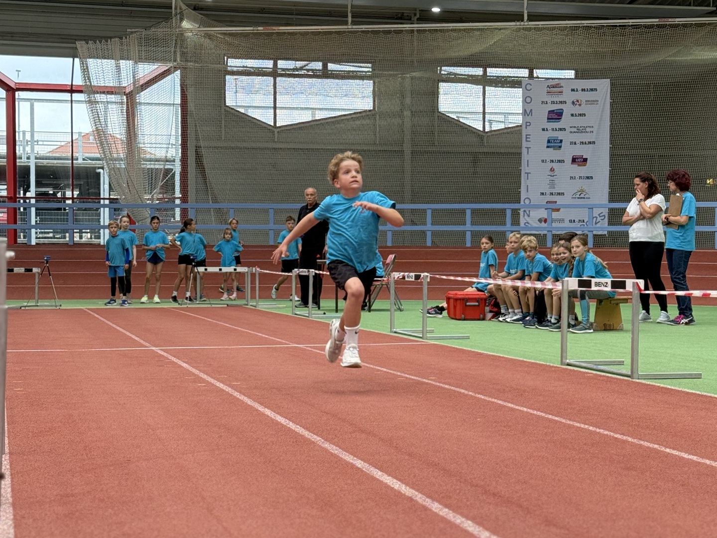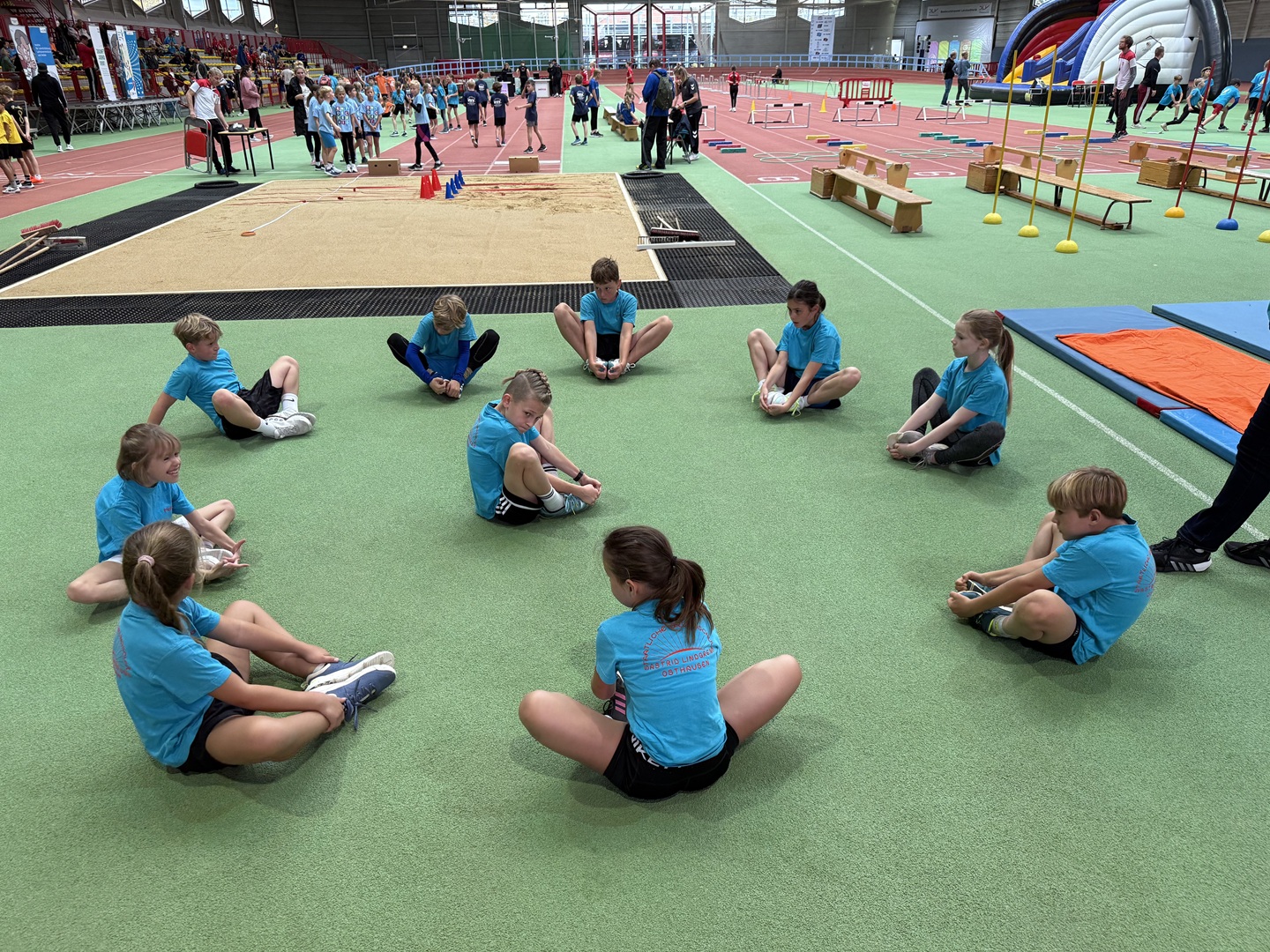 Am Donnerstag, 23.10.2025 erlebte der „SprintCup“ – die schnellste Schule Thüringens“ unter den Organisatoren Julian Reus und Kai Röckert in der Hartwig-Gauder-Leichtathletikhalle in Erfurt bereits seine sechste Auflage. Unsere Schule durfte zum zweiten Mal daran teilnehmen. Zehn Grundschulen und zehn weiterführende Schulen stellten sich den fünf Stationen mit dem finalen Staffellauf, um die schnellste Schule Thüringens zu ermitteln. Gewetteifert wurde nicht nur im klassischen Sprint, sondern an fünf sprintspezifischen Stationen, an denen neben konditionellen Fähigkeiten, wie Kraft & Schnelligkeit, auch koordinative Fähigkeiten, wie die Reaktions- und Rhythmisierungsfähigkeit, überprüft wurden. Die anderen Grundschulen kamen aus Eisenach, Schleusingen, Walschleben, Oberlind, Berlstedt, Greußen, Gera, Langenleuba-Niederhain und Aschara.