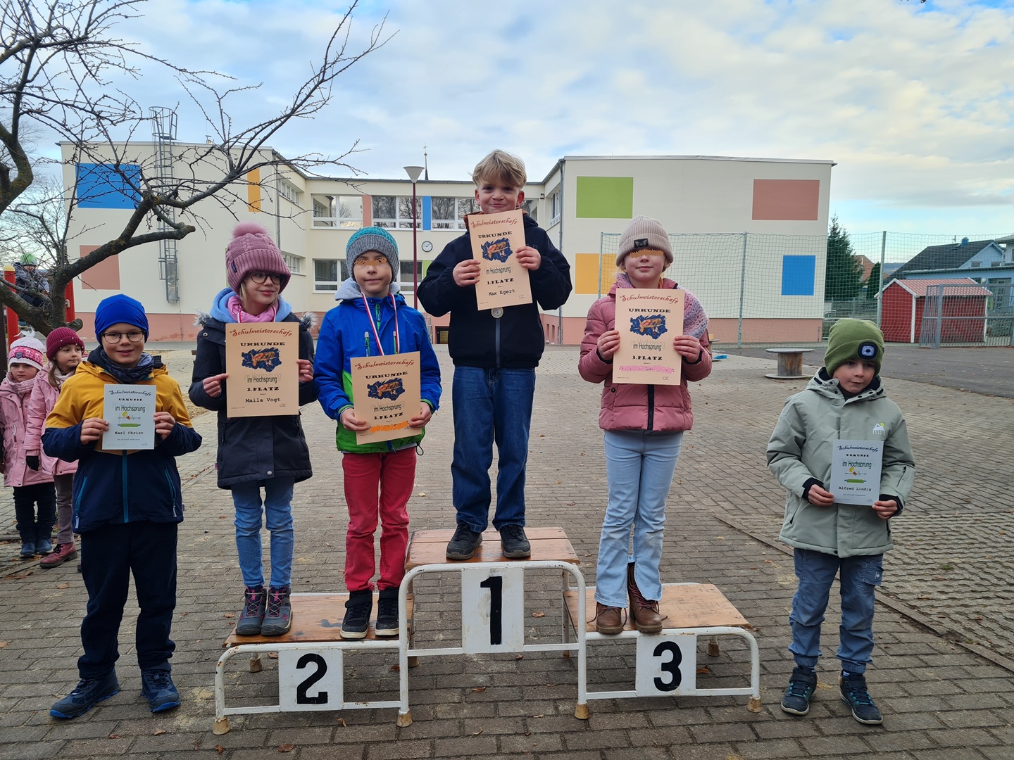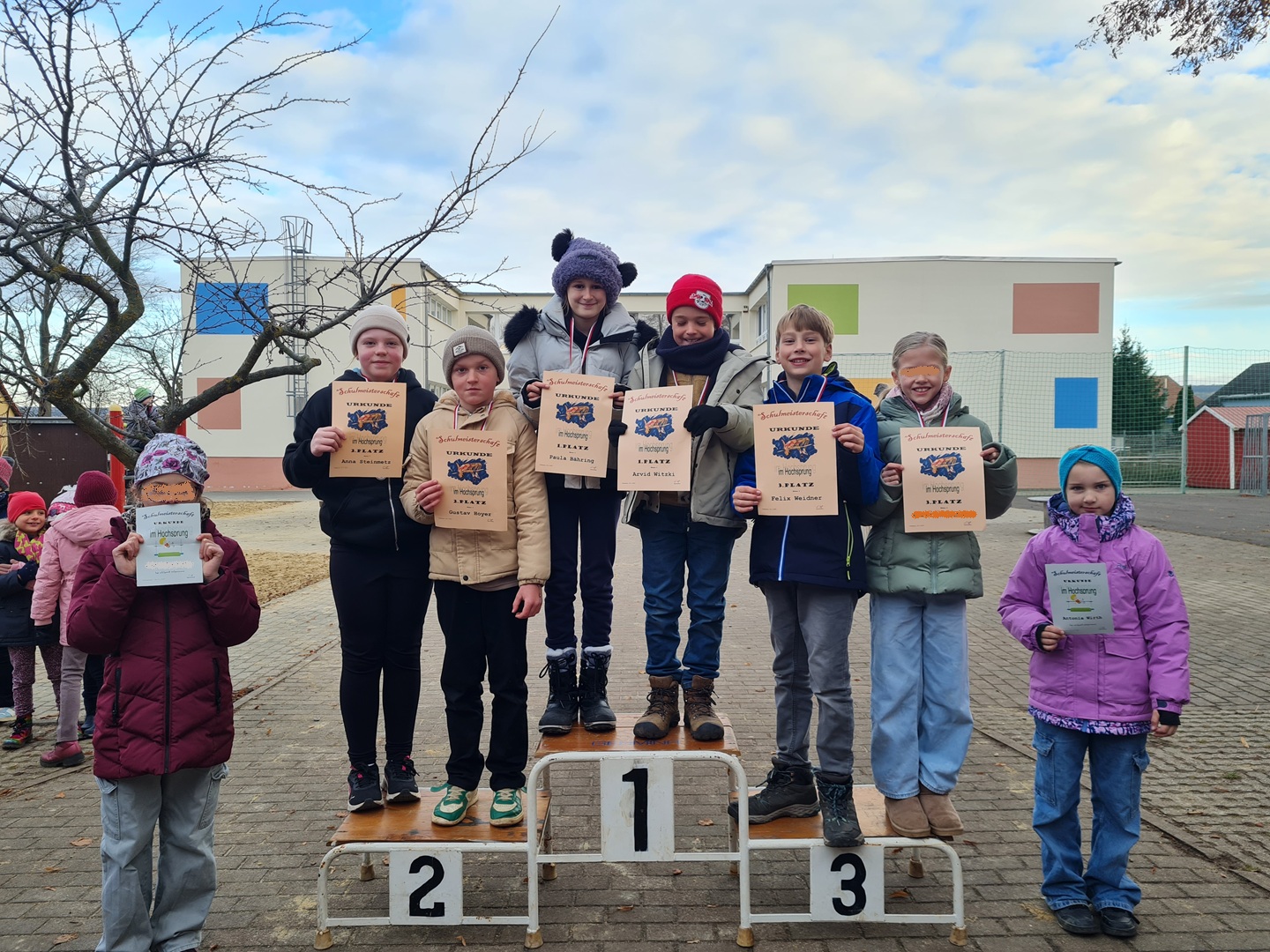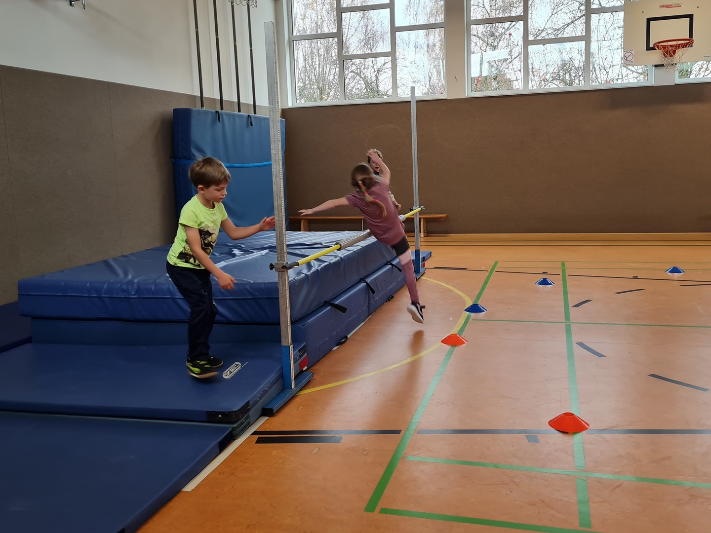 Am Dienstag, 18.11.2025 fand die Schulmeisterschaft im Hochsprung statt. In den letzten Wochen wurde dafür im Unterricht geübt. Insgesamt nahmen 38 Schülerinnen und Schüler aus den Klassen 1 bis 4 teil. Die Teilnahme an diesem Wettbewerb war freiwillig. Der Wettkampf verlief spannend und war von einer positiven, motivierenden Atmosphäre geprägt. Die Schülerinnen und Schüler zeigten Fairness, gegenseitige Unterstützung und sportlichen Ehrgeiz. Mehrere Teilnehmende stellten persönliche Bestleistungen auf. Die Leistungskurve variiert je nach Klasse und individuellem Training, doch der Gesamteindruck war von fortschrittlicher Technik, guter Koordination und zunehmender Sprungkraft geprägt.
