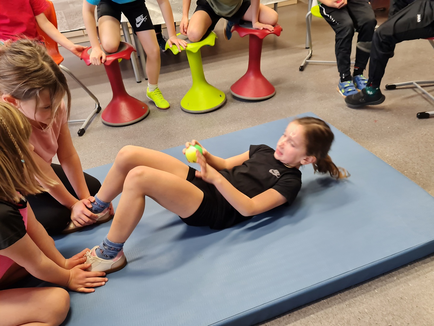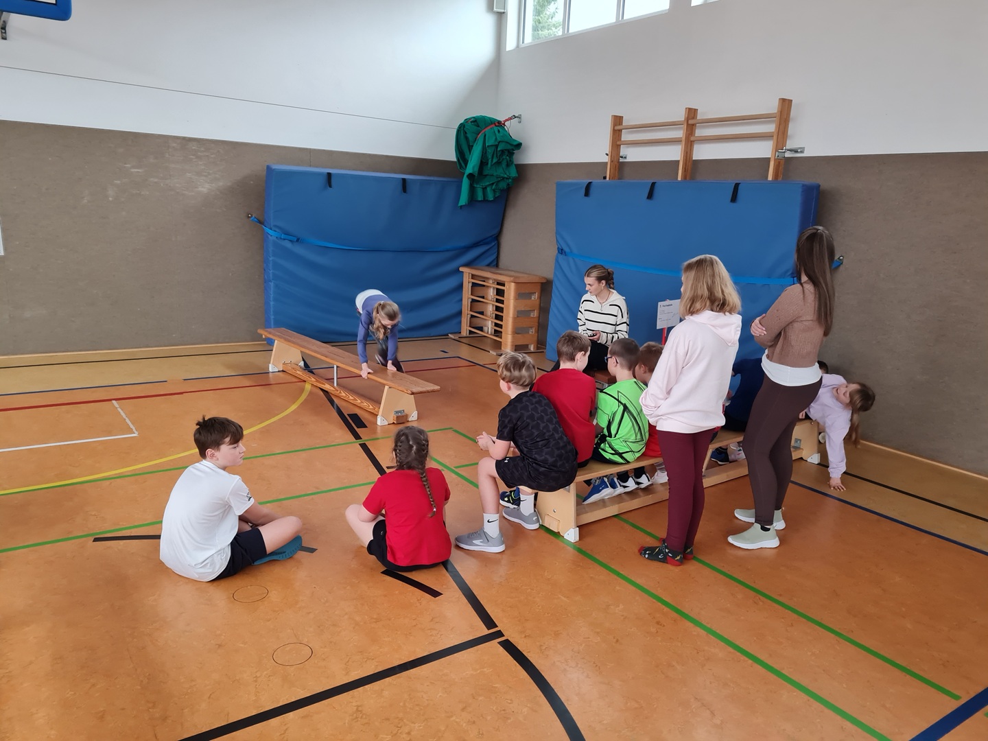 In klassengemischten Gruppen meisterten die Kinder gemeinsam mit einer Lehrerin oder Erzieherin jede Station. Dabei wurde lautstark angefeuert, unterstützt und mitgefiebert – eine tolle Stimmung in der ganzen Turnhalle und in den Horträumen. Zwischendurch gab es eine „Pause-Station“, um kurz zu entspannen oder zu spielen.